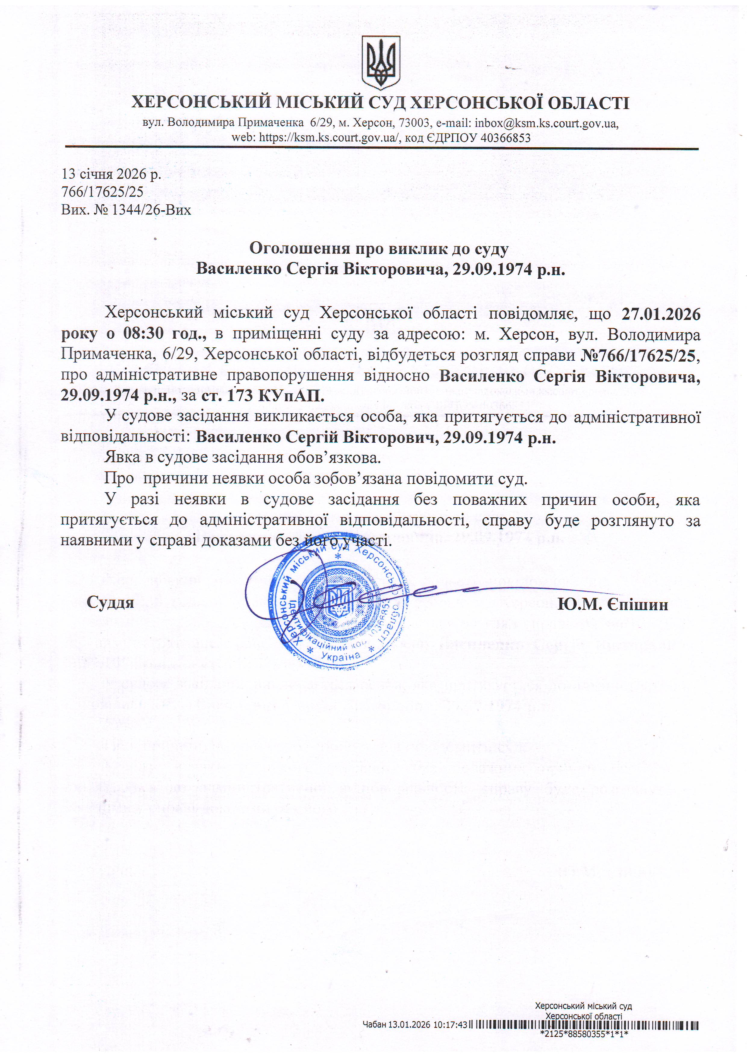 ОГОЛОШЕННЯ ПРО ВИКЛИК ДО СУДУ