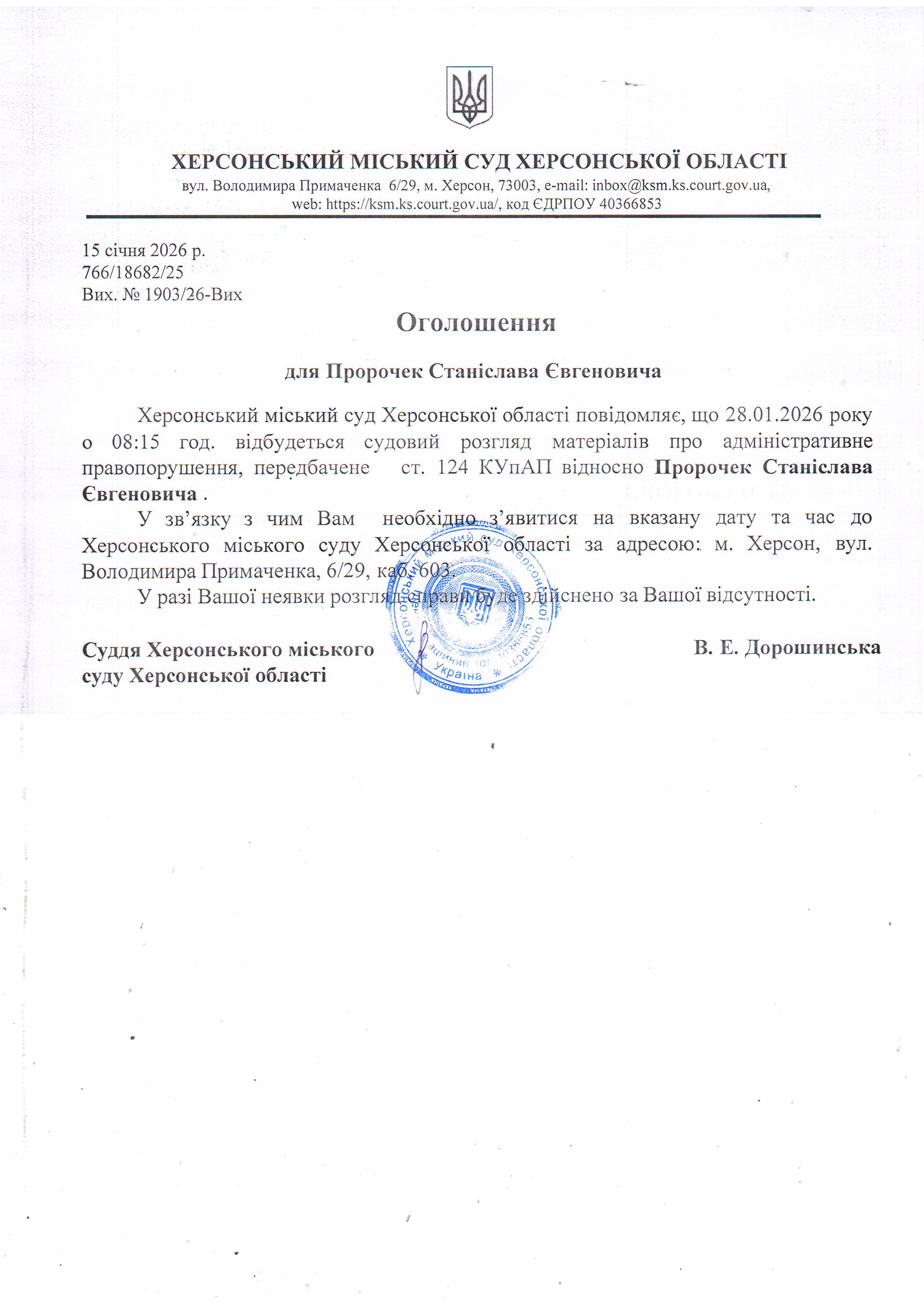 ОГОЛОШЕННЯ ПРО ВИКЛИК ДО СУДУ