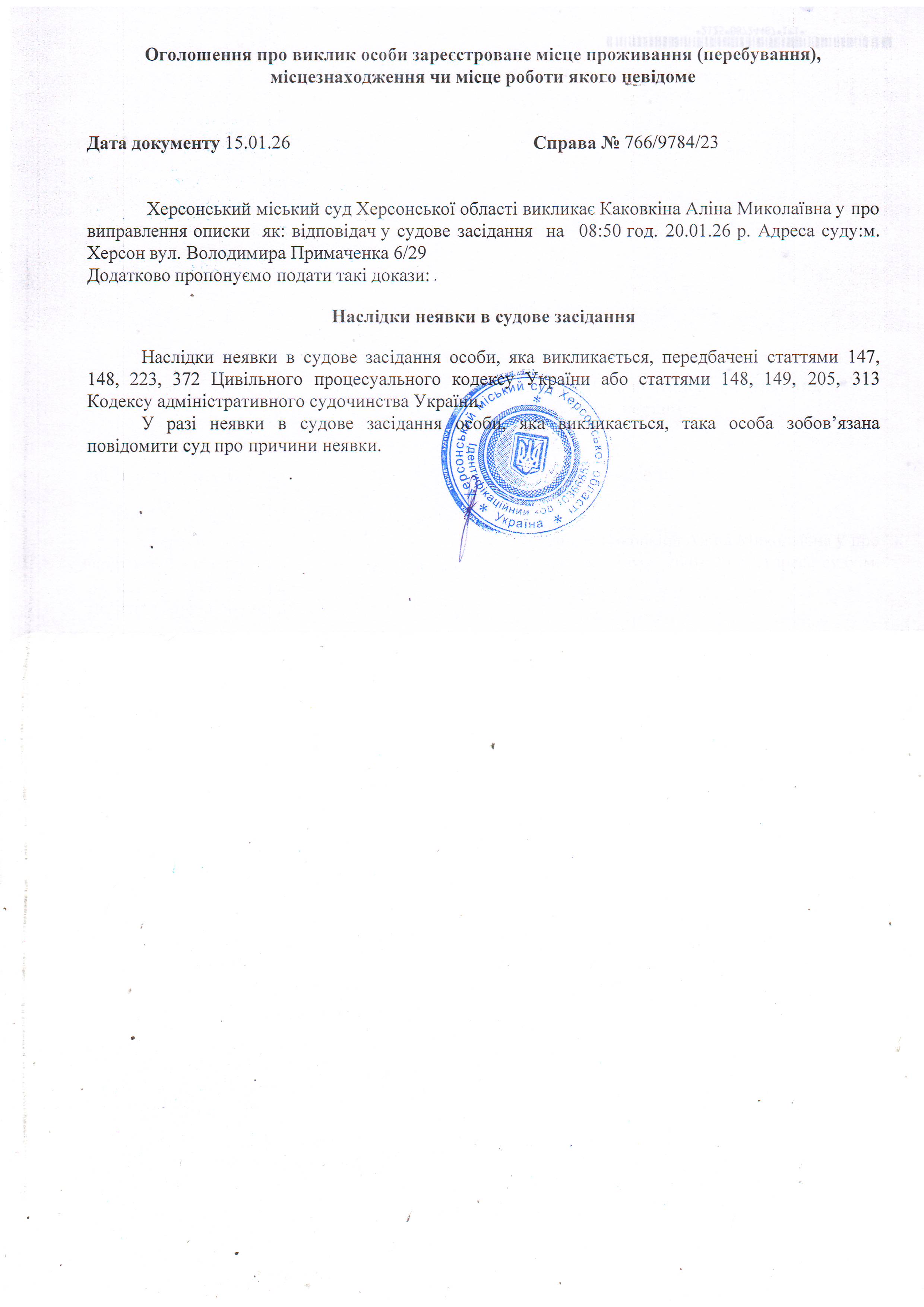 ОГОЛОШЕННЯ ПРО ВИКЛИК ДО СУДУ