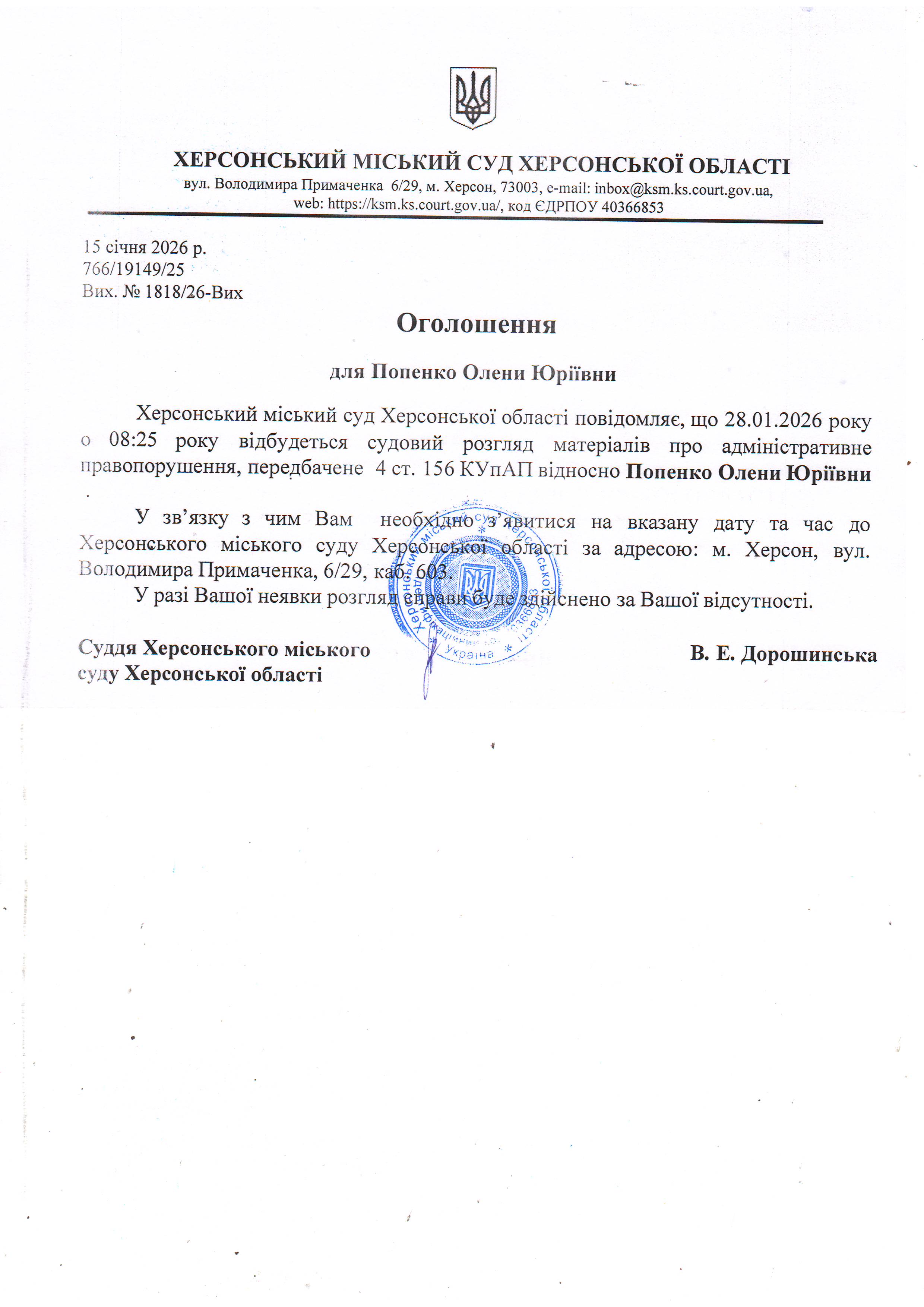 ОГОЛОШЕННЯ ПРО ВИКЛИК ДО СУДУ
