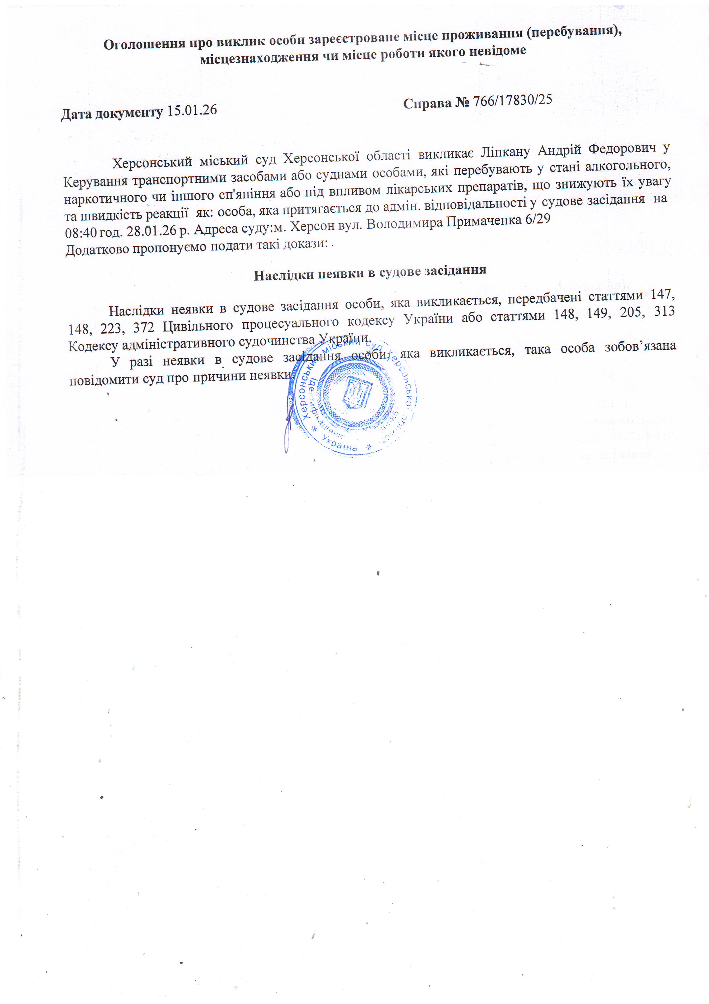 ОГОЛОШЕННЯ ПРО ВИКЛИК ДО СУДУ