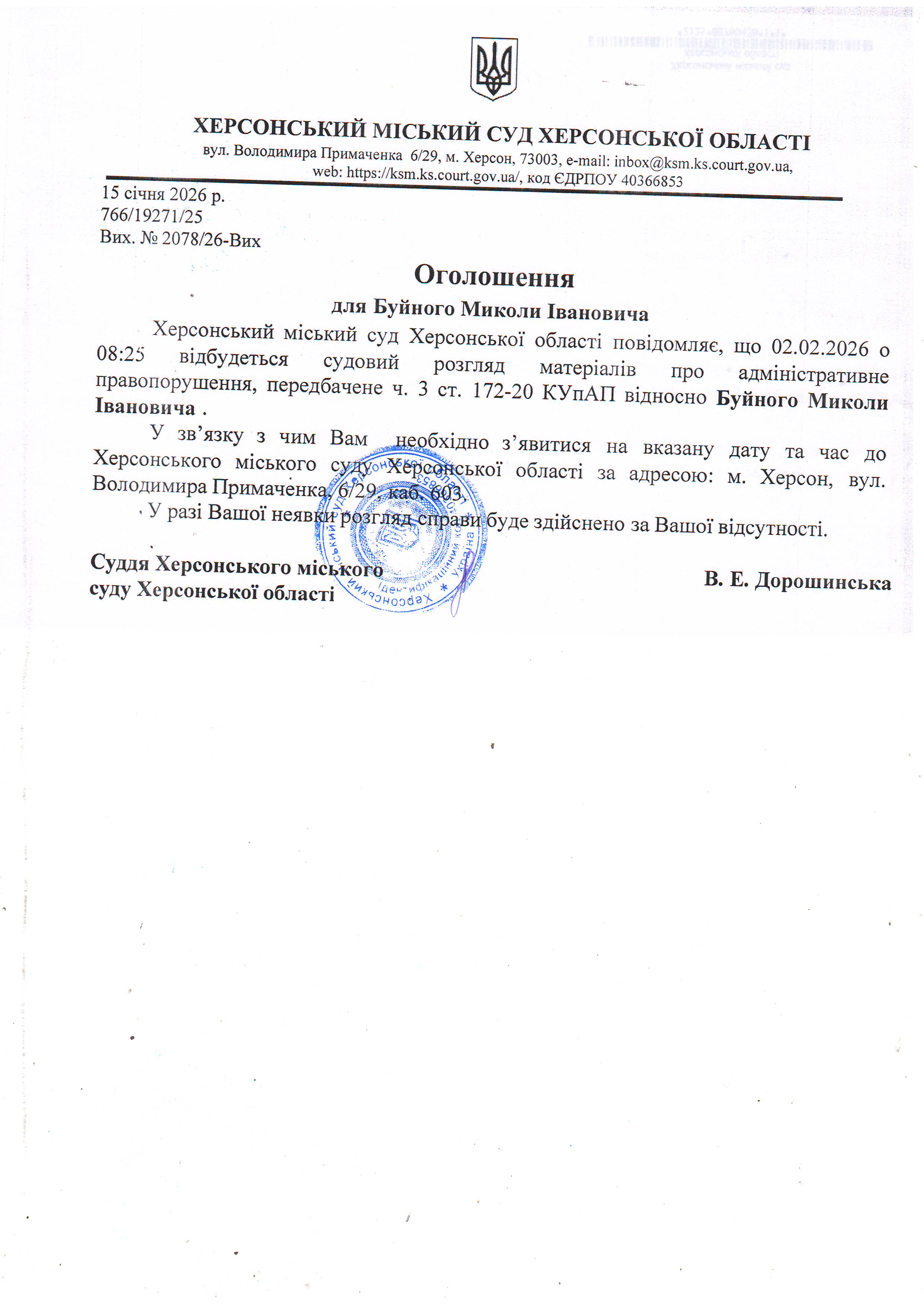 ОГОЛОШЕННЯ ПРО ВИКЛИК ДО СУДУ