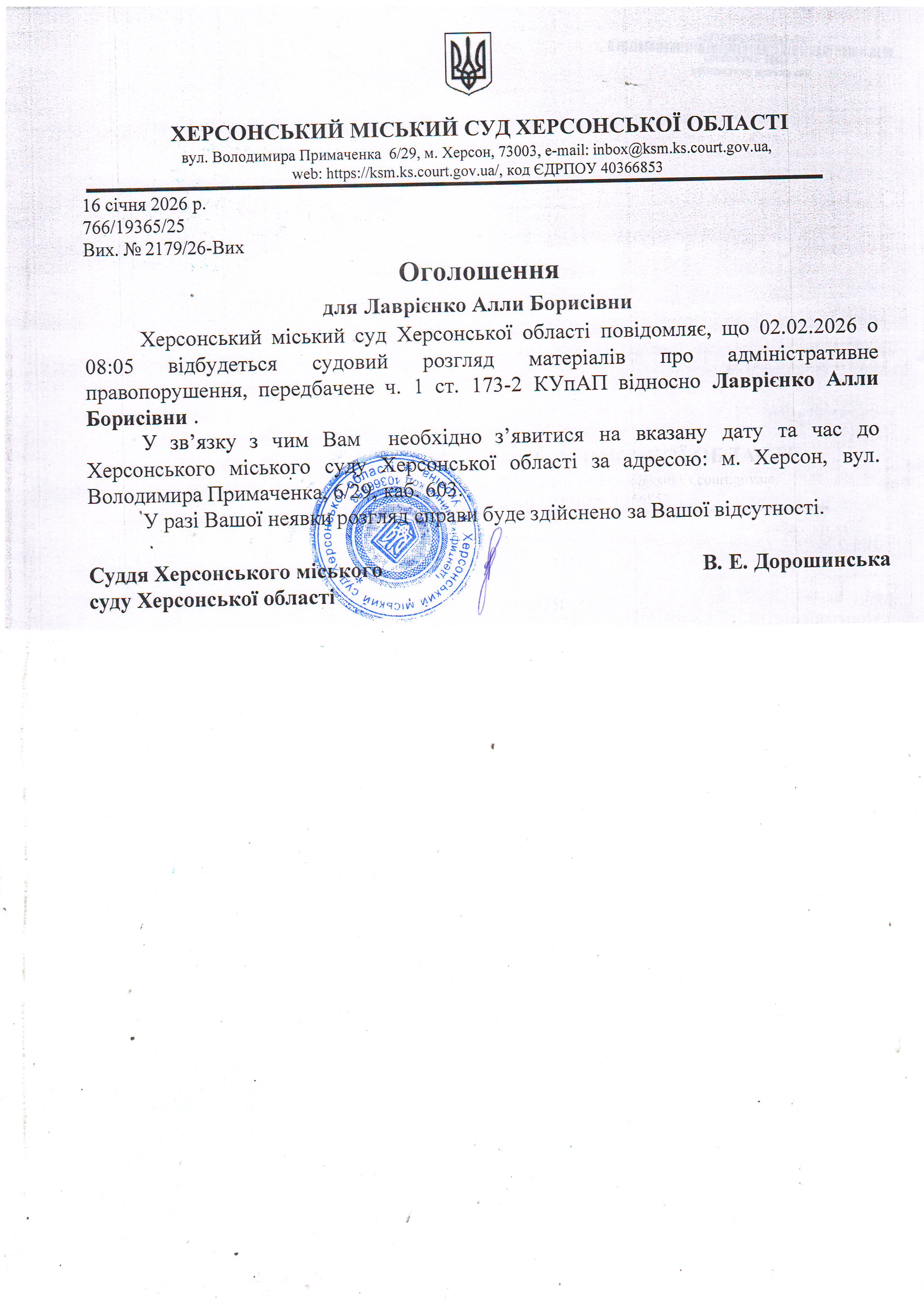 ОГОЛОШЕННЯ ПРО ВИКЛИК ДО СУДУ
