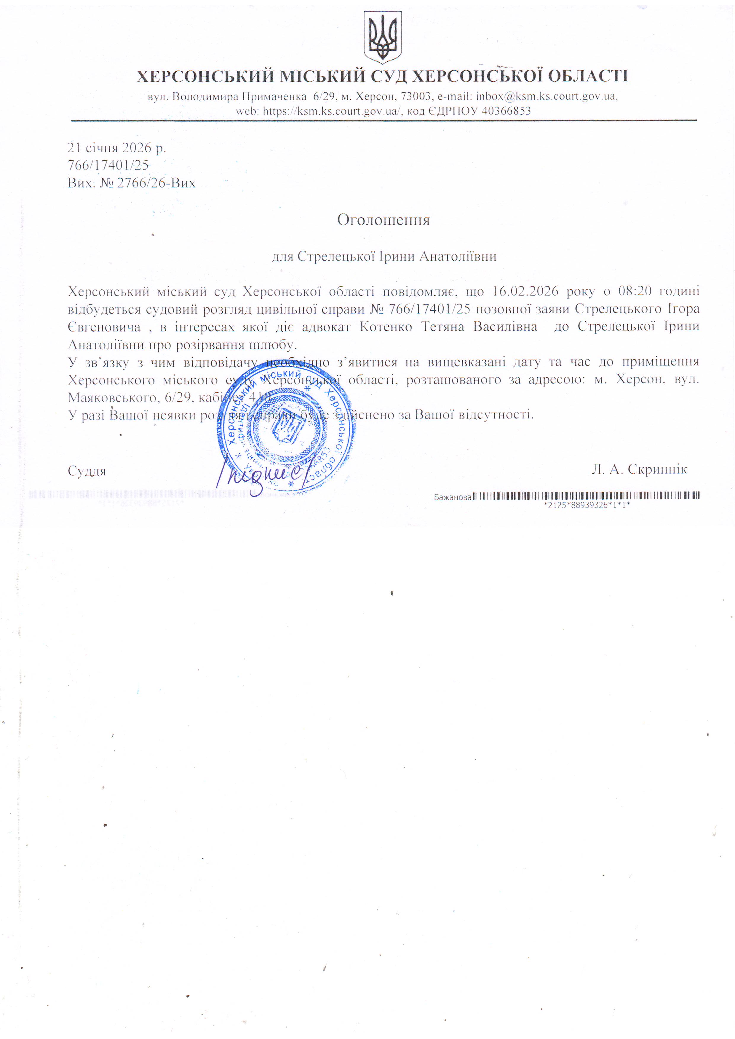 ОГОЛОШЕННЯ ПРО ВИКЛИК ДО СУДУ