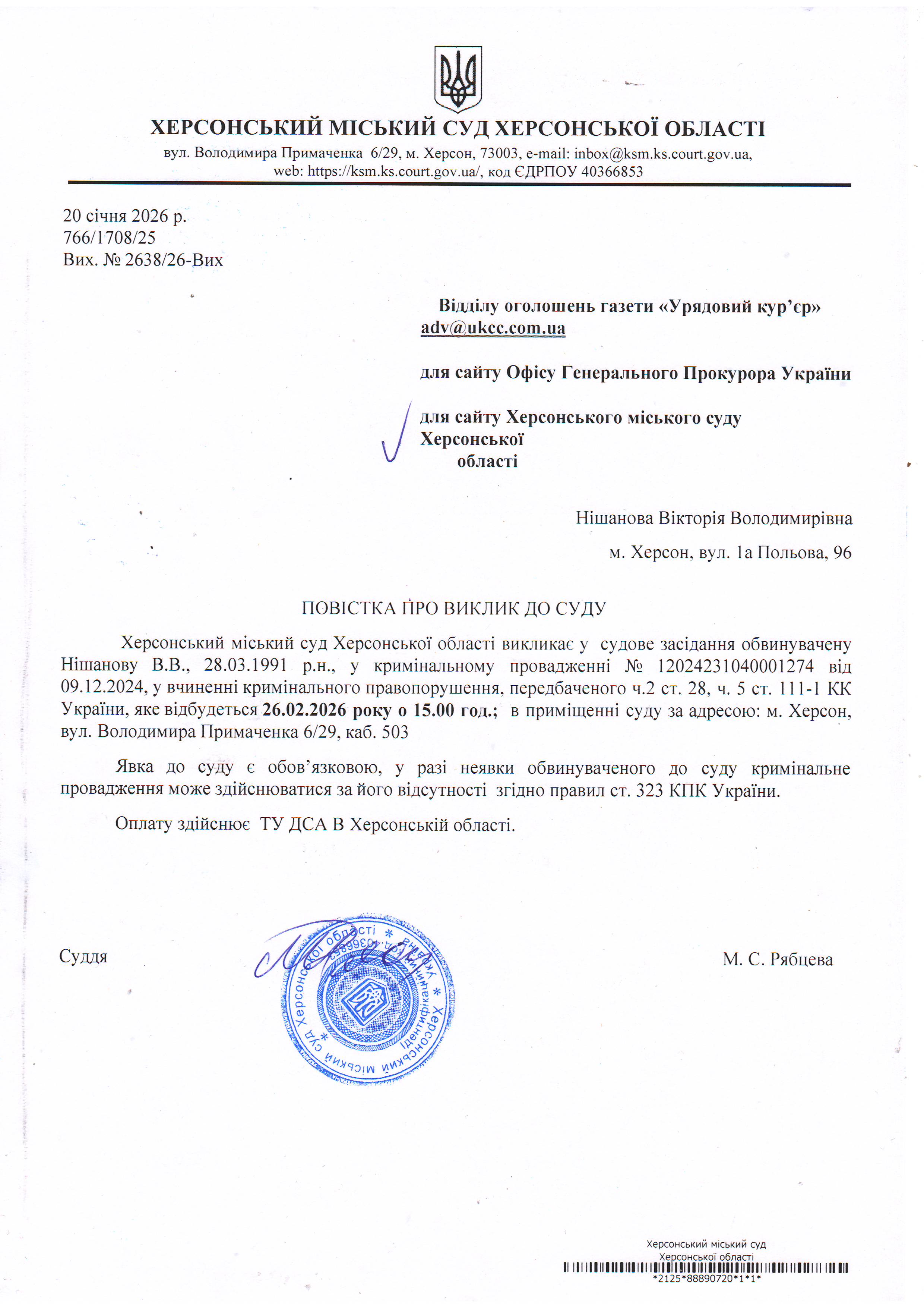 ОГОЛОШЕННЯ ПРО ВИКЛИК ДО СУДУ