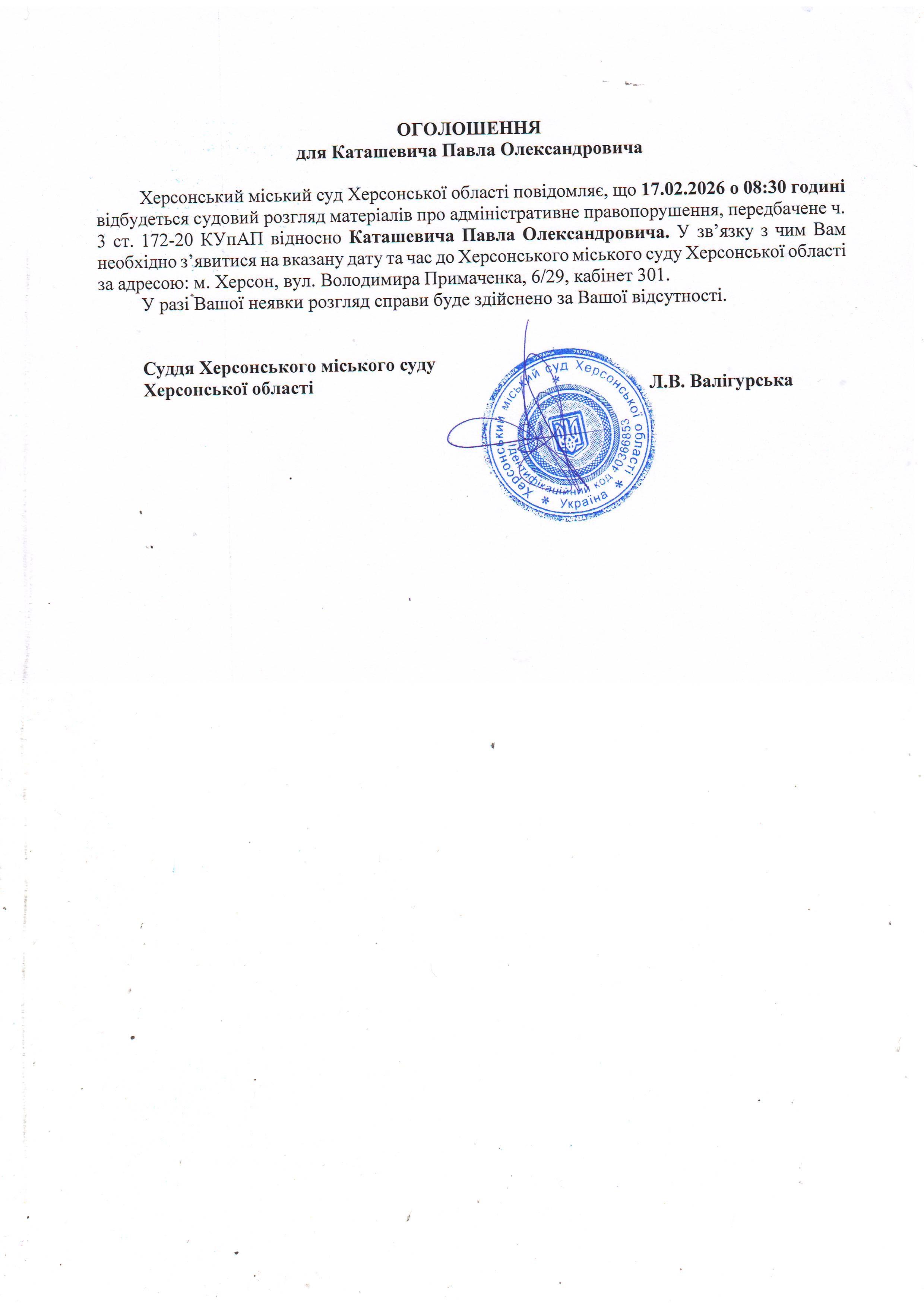 ОГОЛОШЕННЯ ПРО ВИКЛИК ДО СУДУ