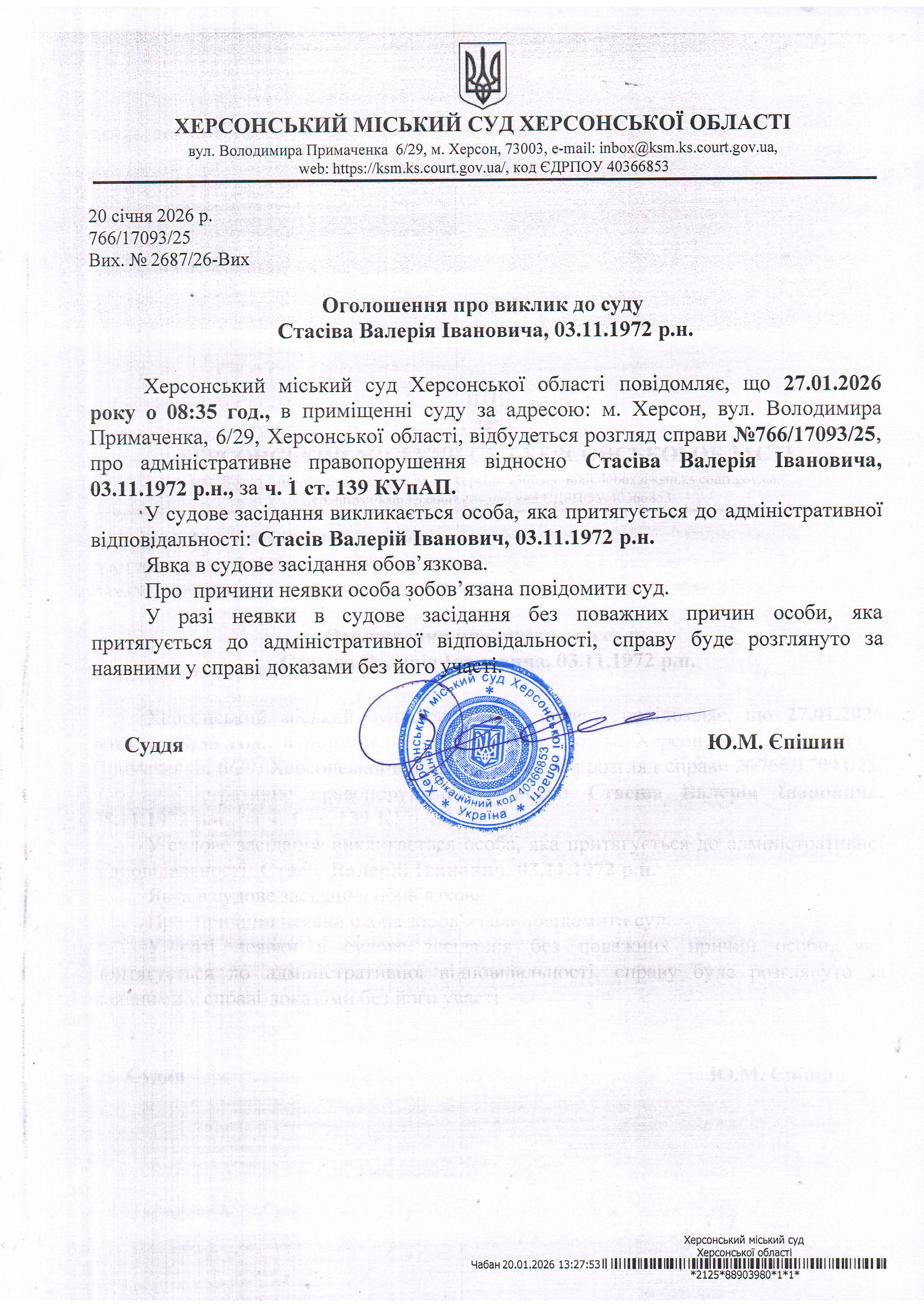 ОГОЛОШЕННЯ ПРО ВИКЛИК ДО СУДУ