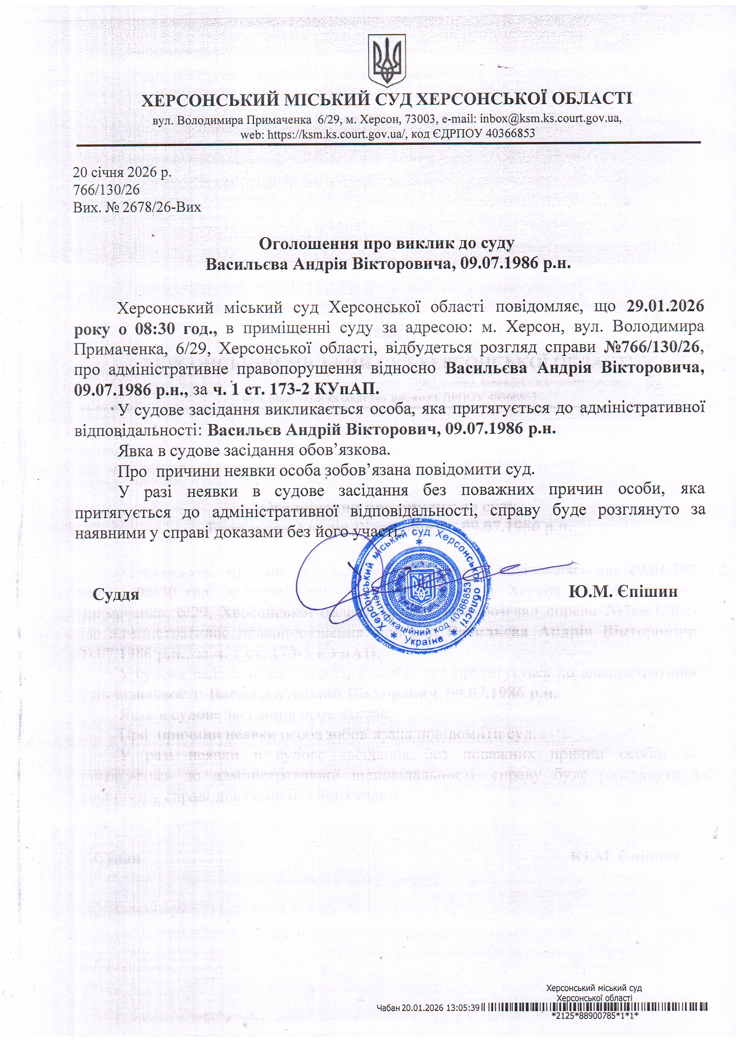 ОГОЛОШЕННЯ ПРО ВИКЛИК ДО СУДУ