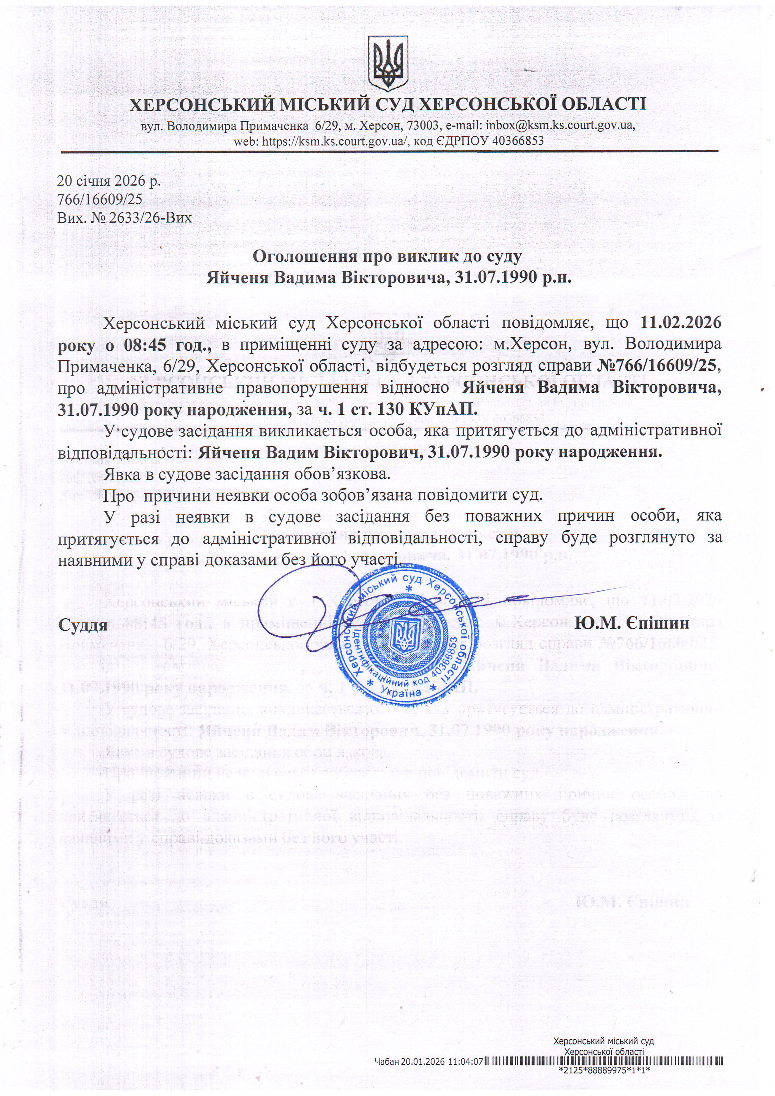 ОГОЛОШЕННЯ ПРО ВИКЛИК ДО СУДУ
