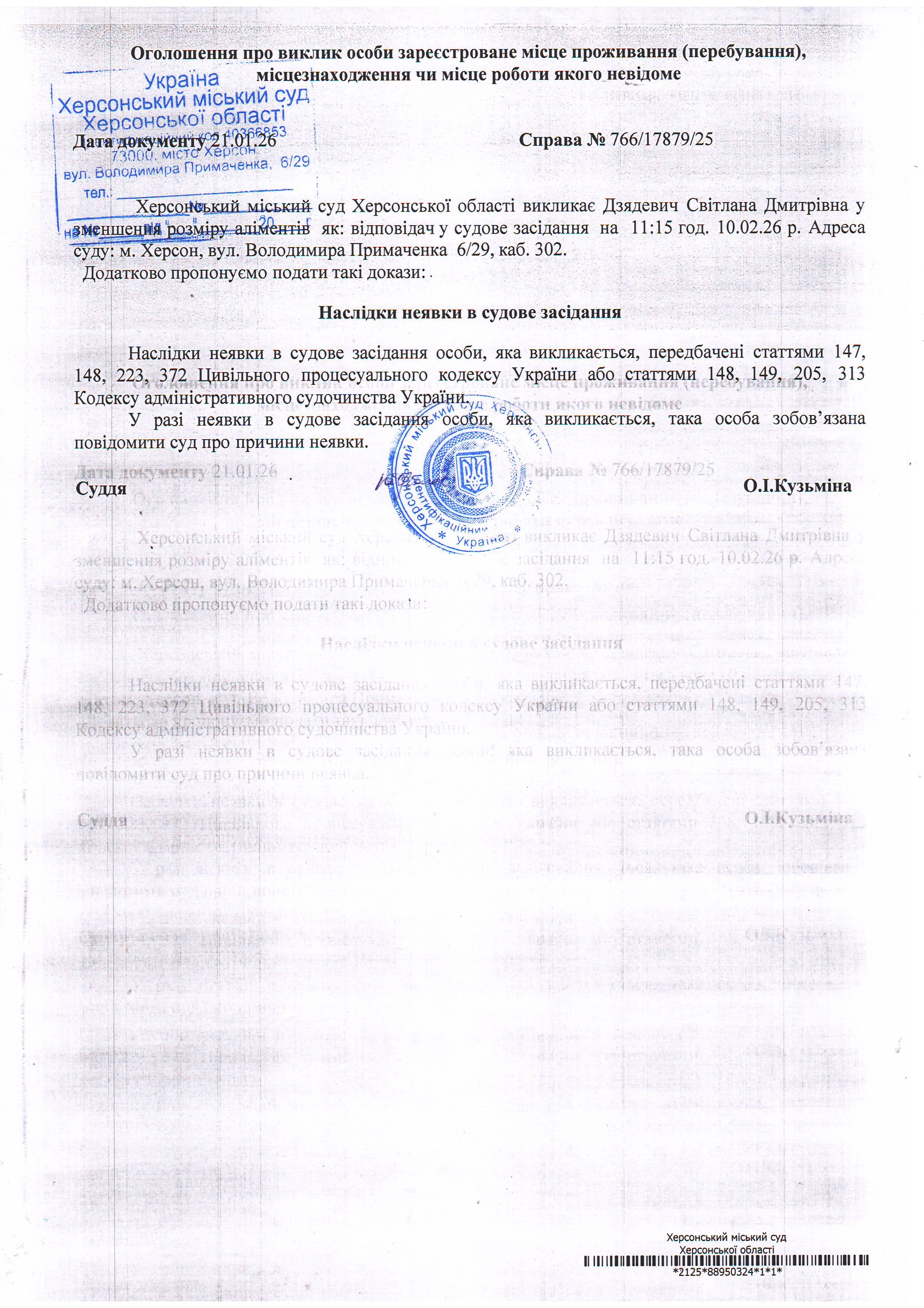 ОГОЛОШЕННЯ ПРО ВИКЛИК ДО СУДУ