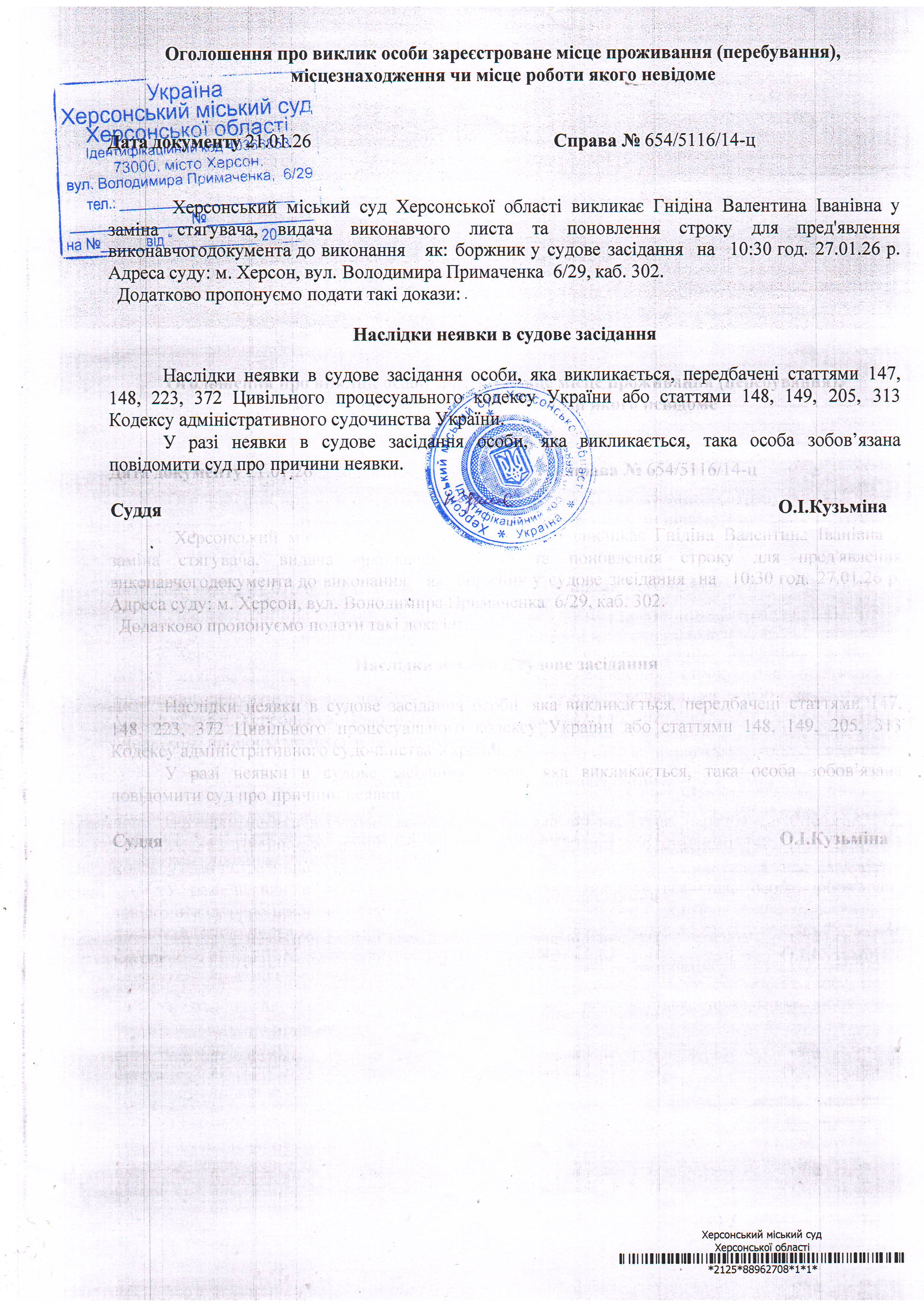 ОГОЛОШЕННЯ ПРО ВИКЛИК ДО СУДУ