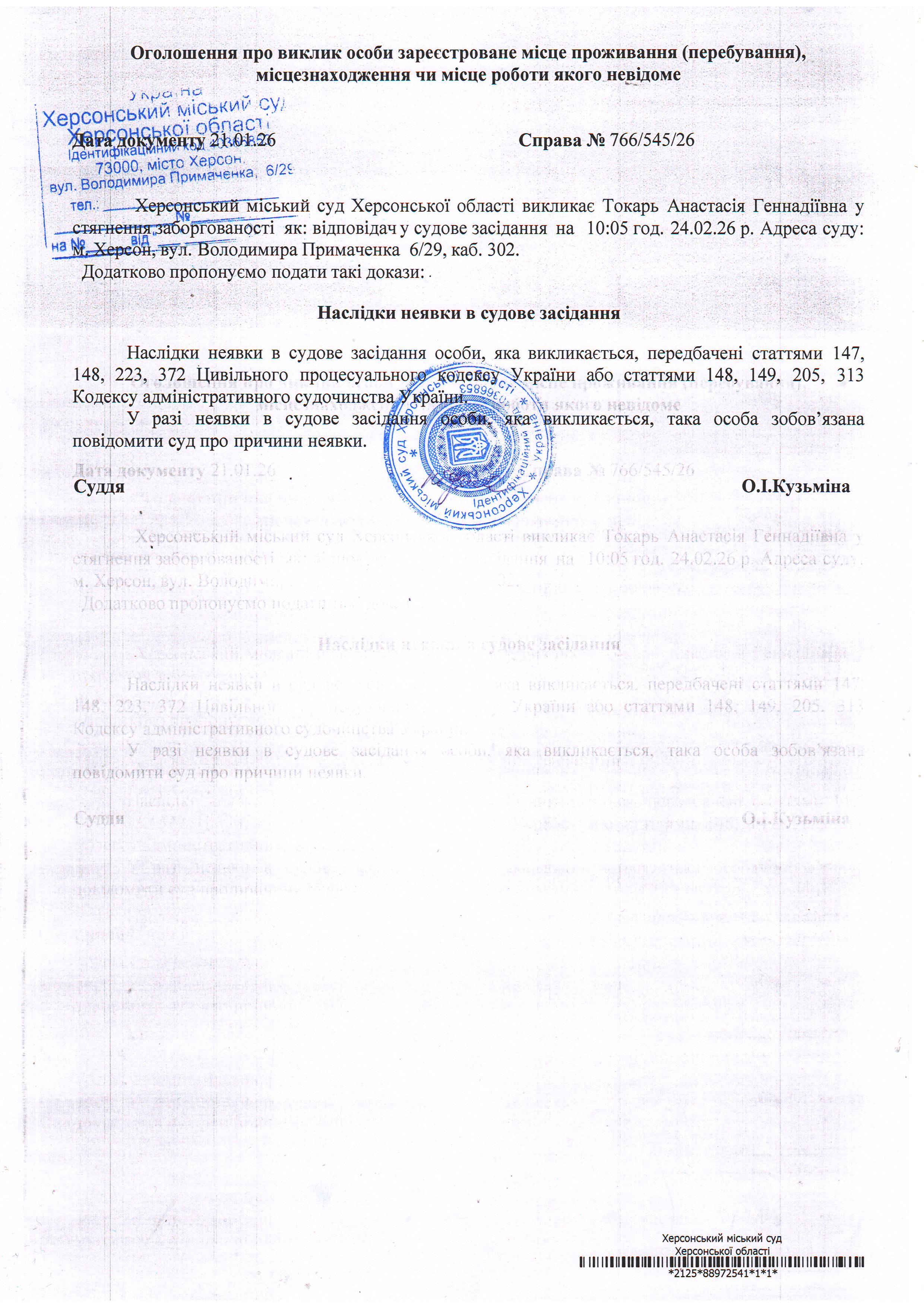 ОГОЛОШЕННЯ ПРО ВИКЛИК ДО СУДУ