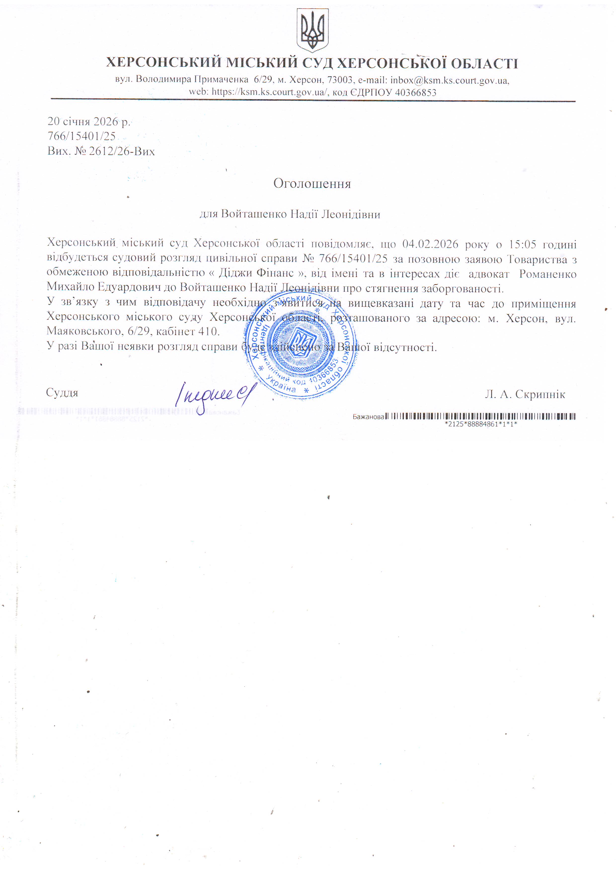 ОГОЛОШЕННЯ ПРО ВИКЛИК ДО СУДУ