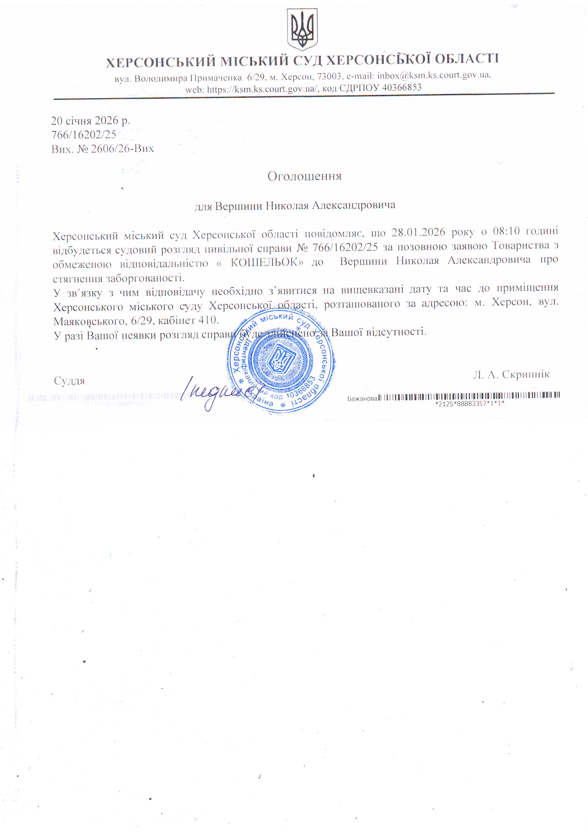 ОГОЛОШЕННЯ ПРО ВИКЛИК ДО СУДУ