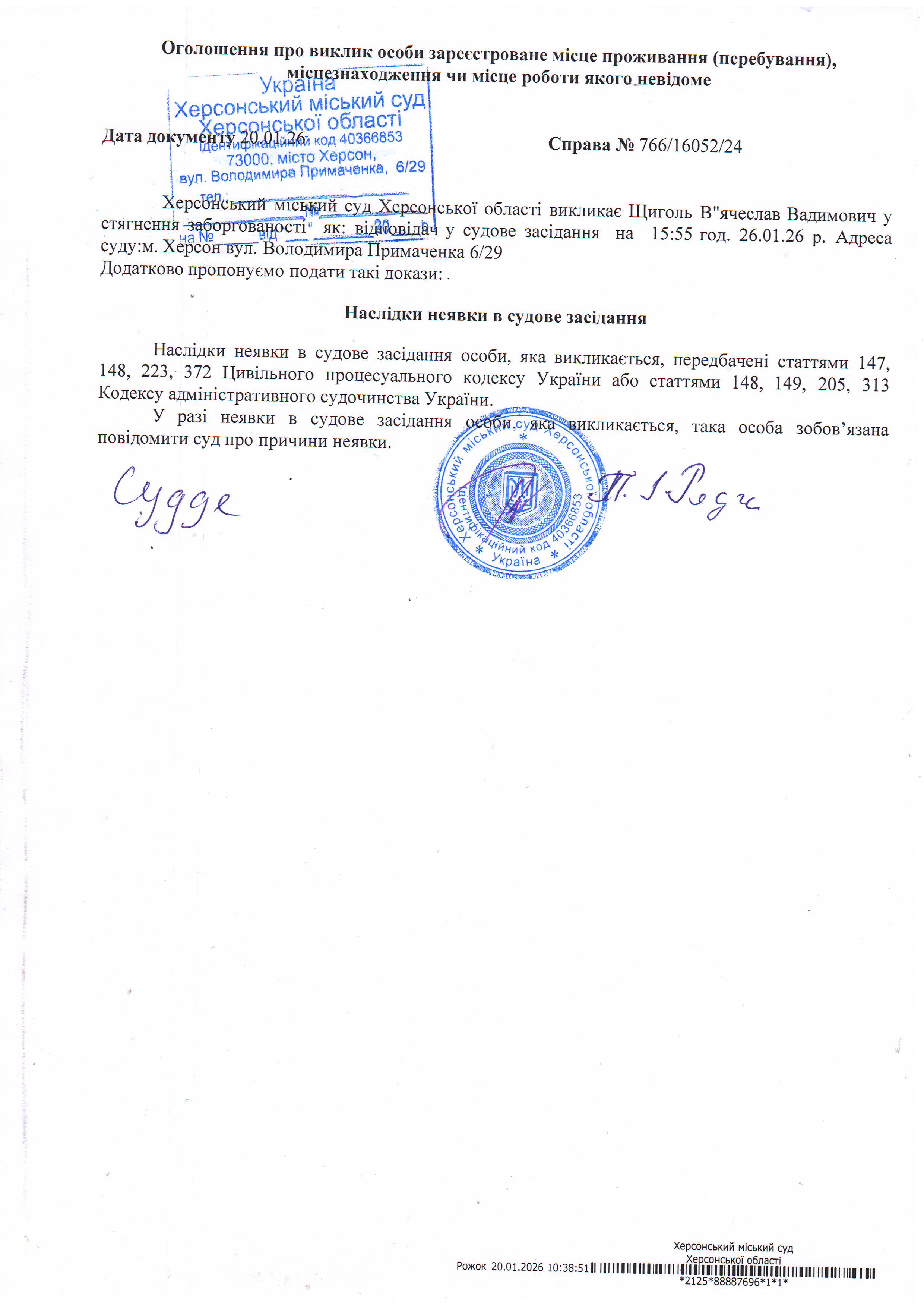 Оголошення для Щиголя В'ячеслава Вадимовича