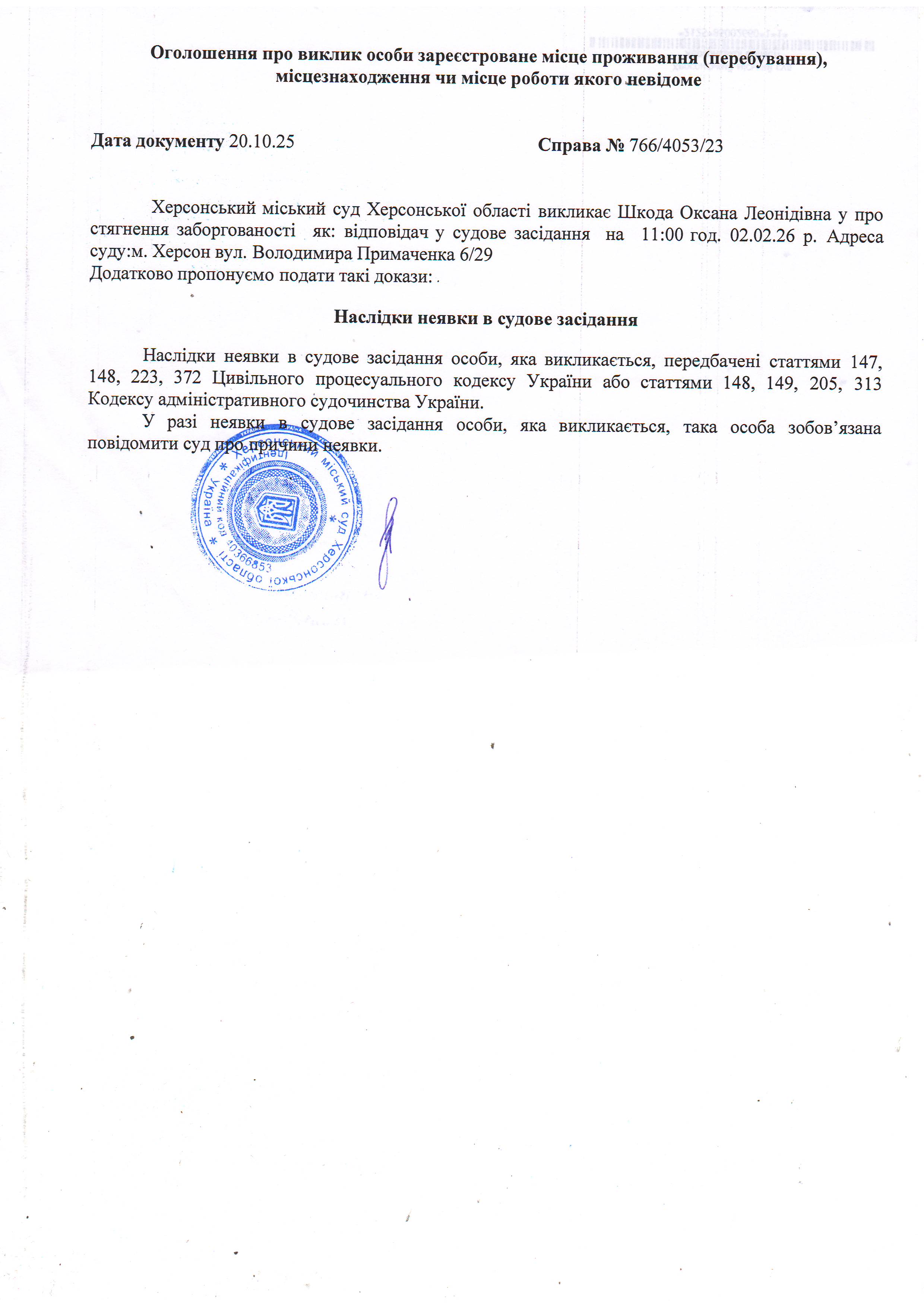 ОГОЛОШЕННЯ ПРО ВИКЛИК ДО СУДУ