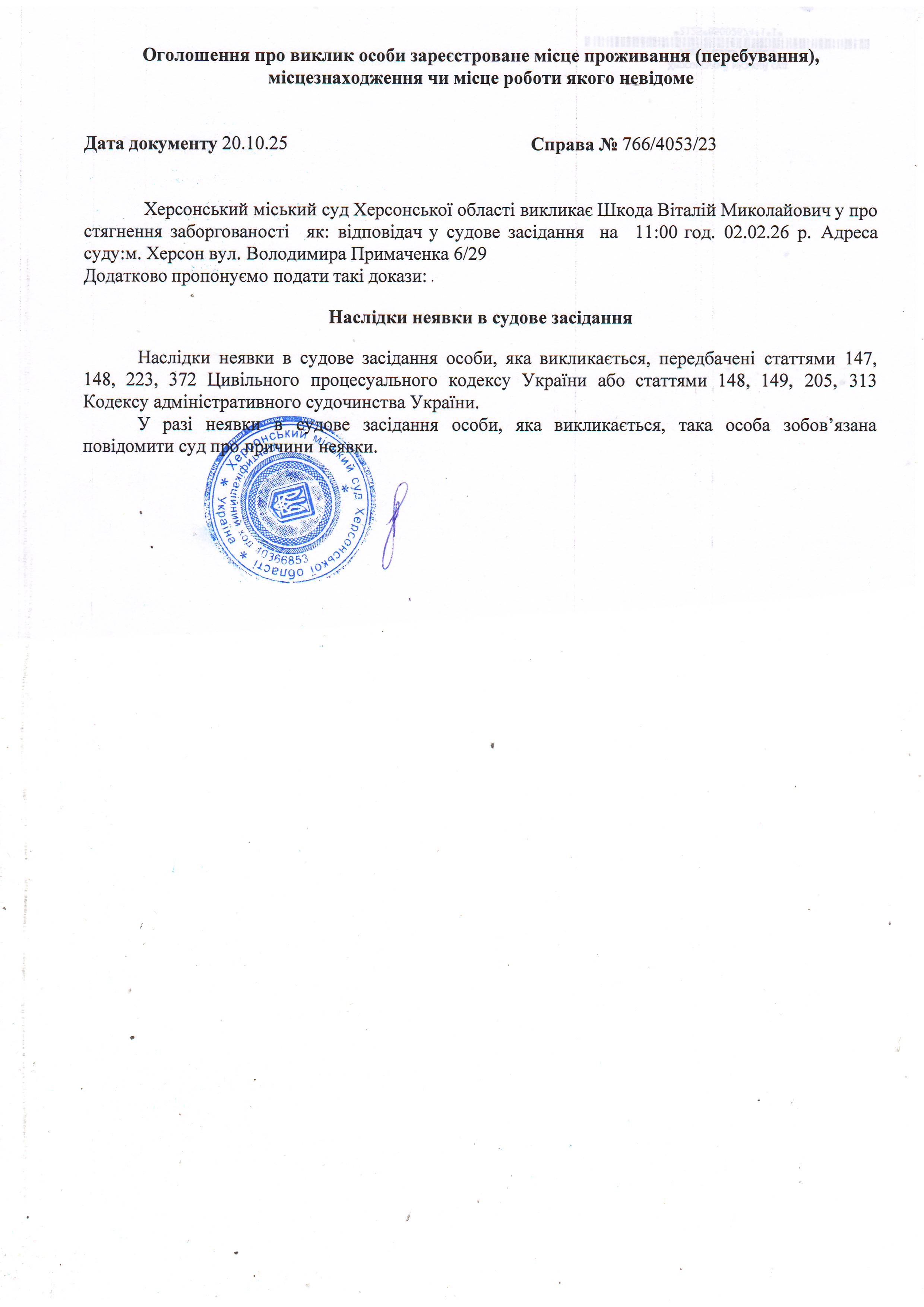 ОГОЛОШЕННЯ ПРО ВИКЛИК ДО СУДУ