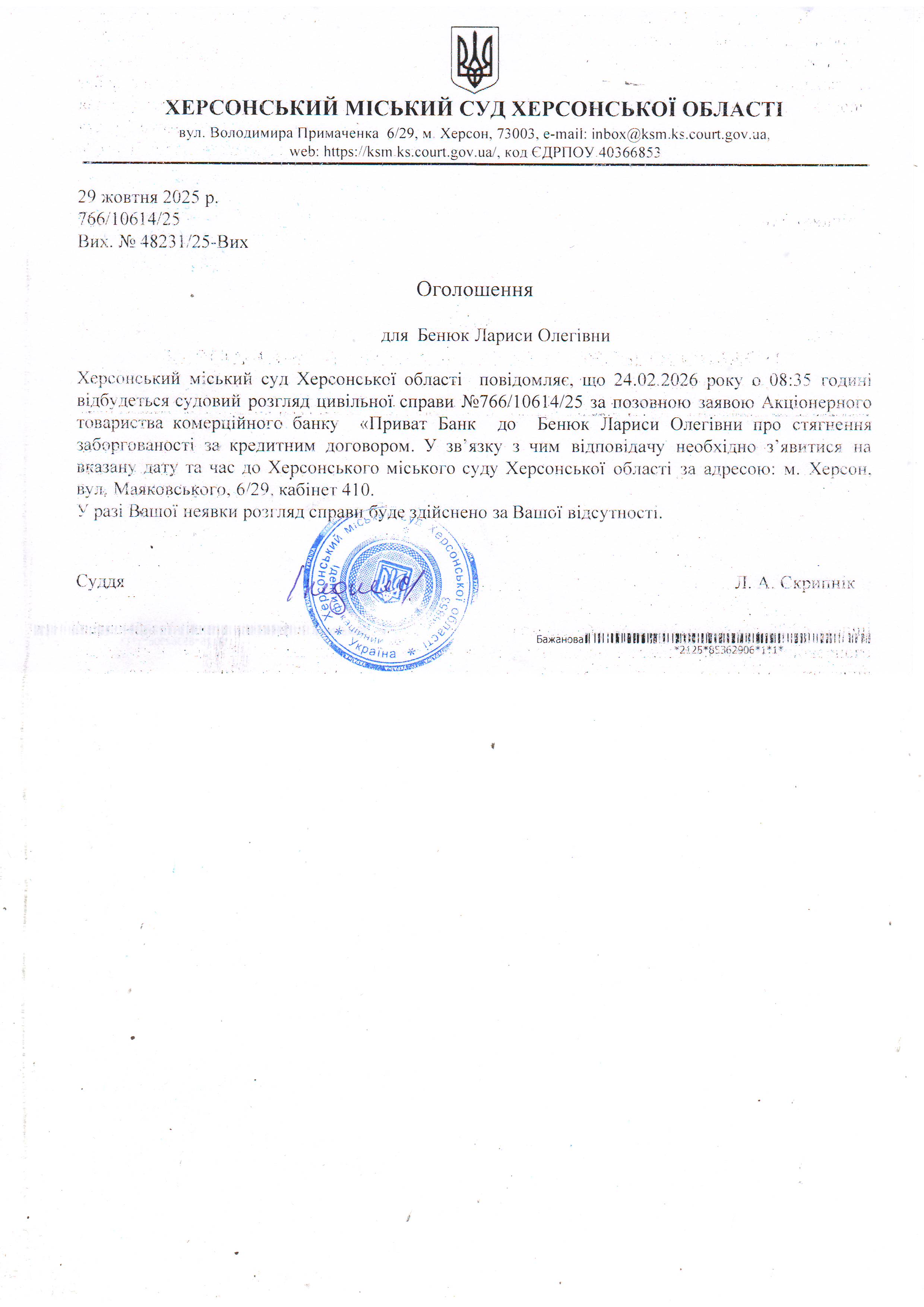 ОГОЛОШЕННЯ ПРО ВИКЛИК ДО СУДУ
