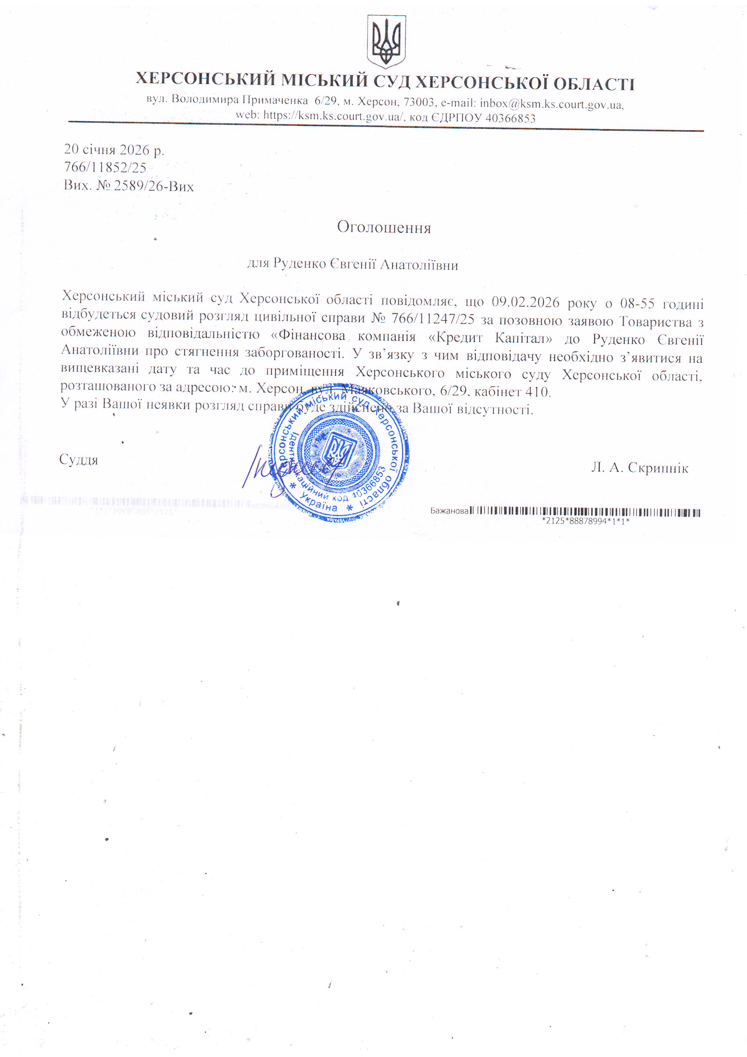 ОГОЛОШЕННЯ ПРО ВИКЛИК ДО СУДУ