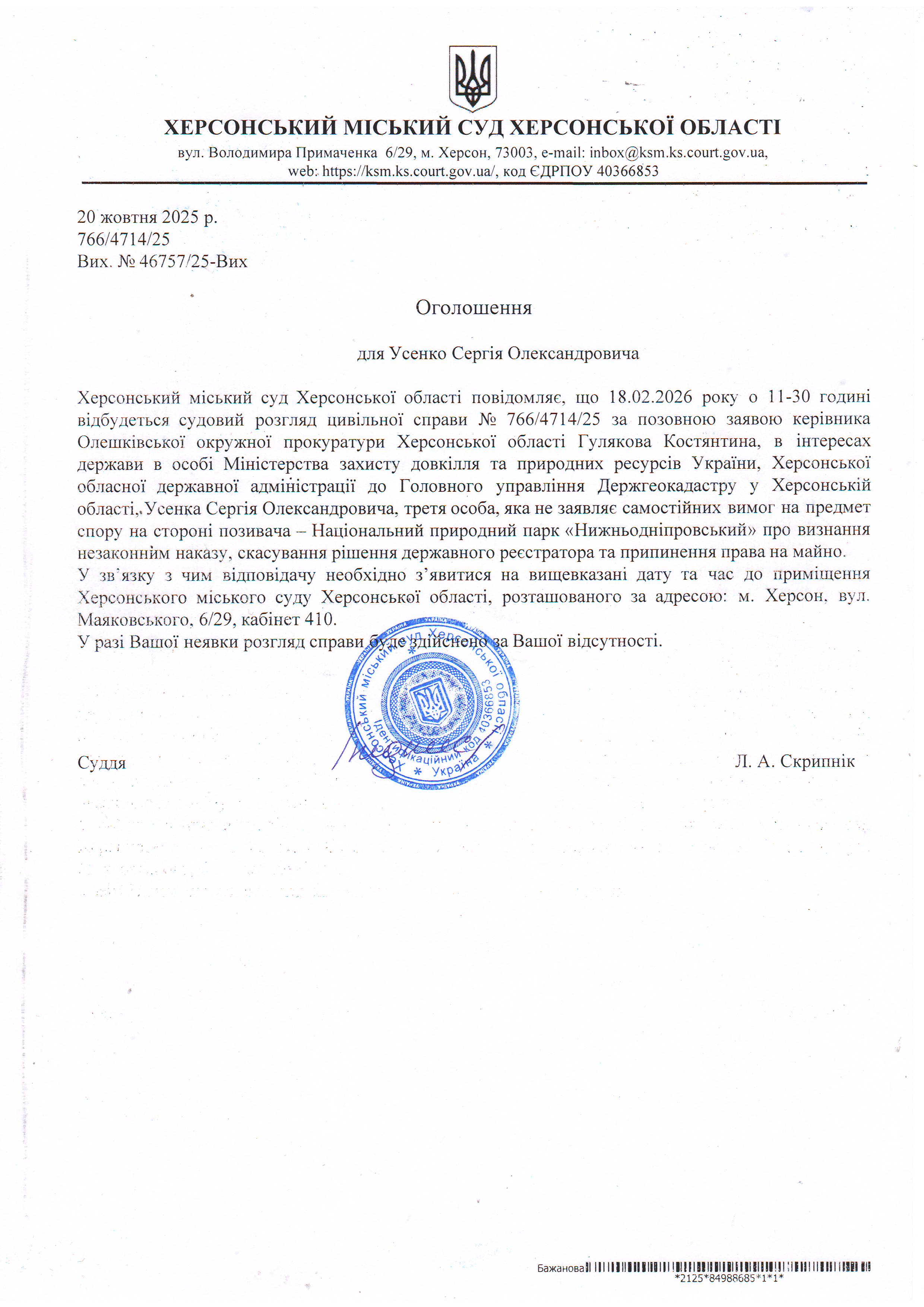 ОГОЛОШЕННЯ ПРО ВИКЛИК ДО СУДУ