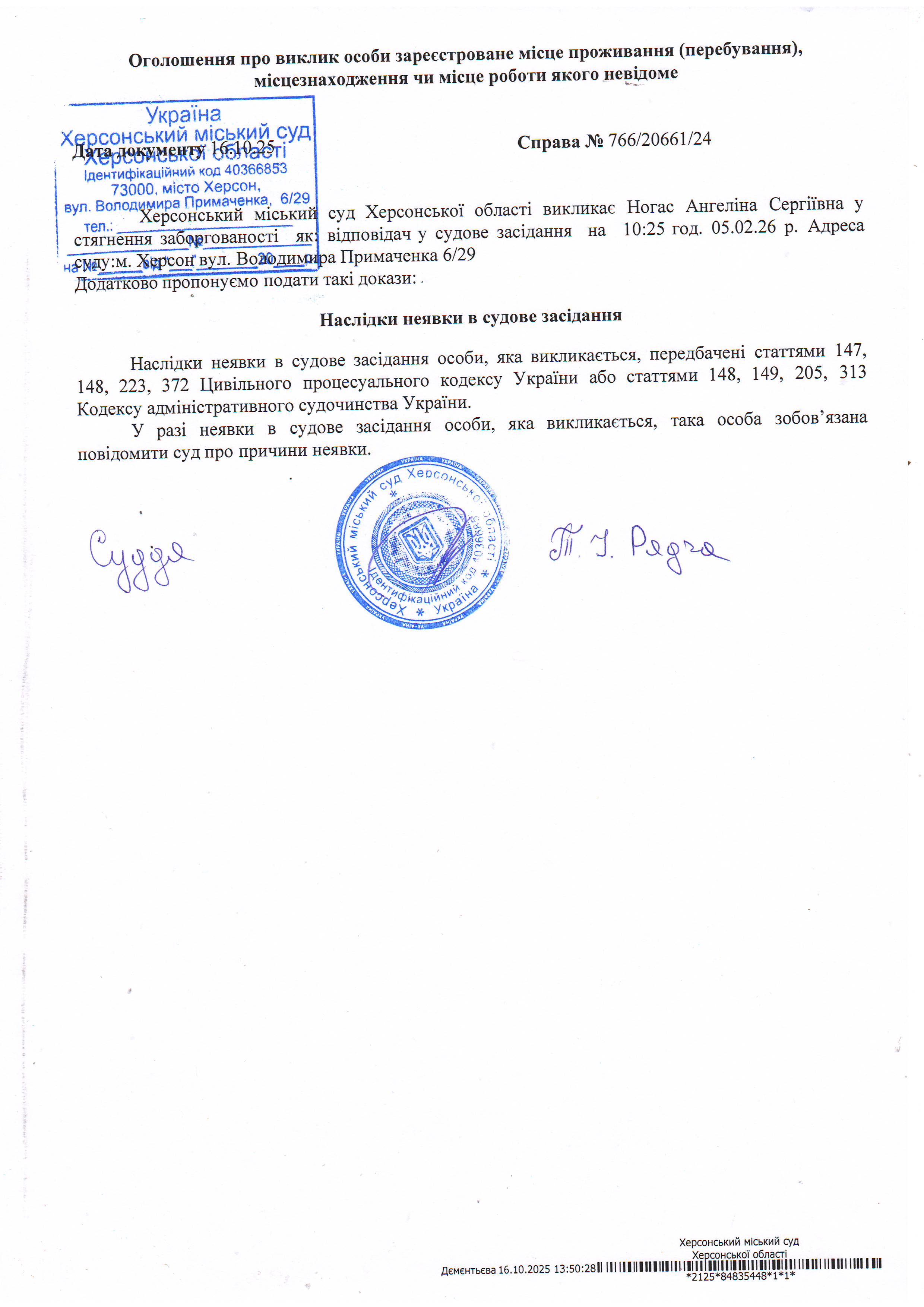 ОГОЛОШЕННЯ ПРО ВИКЛИК ДО СУДУ
