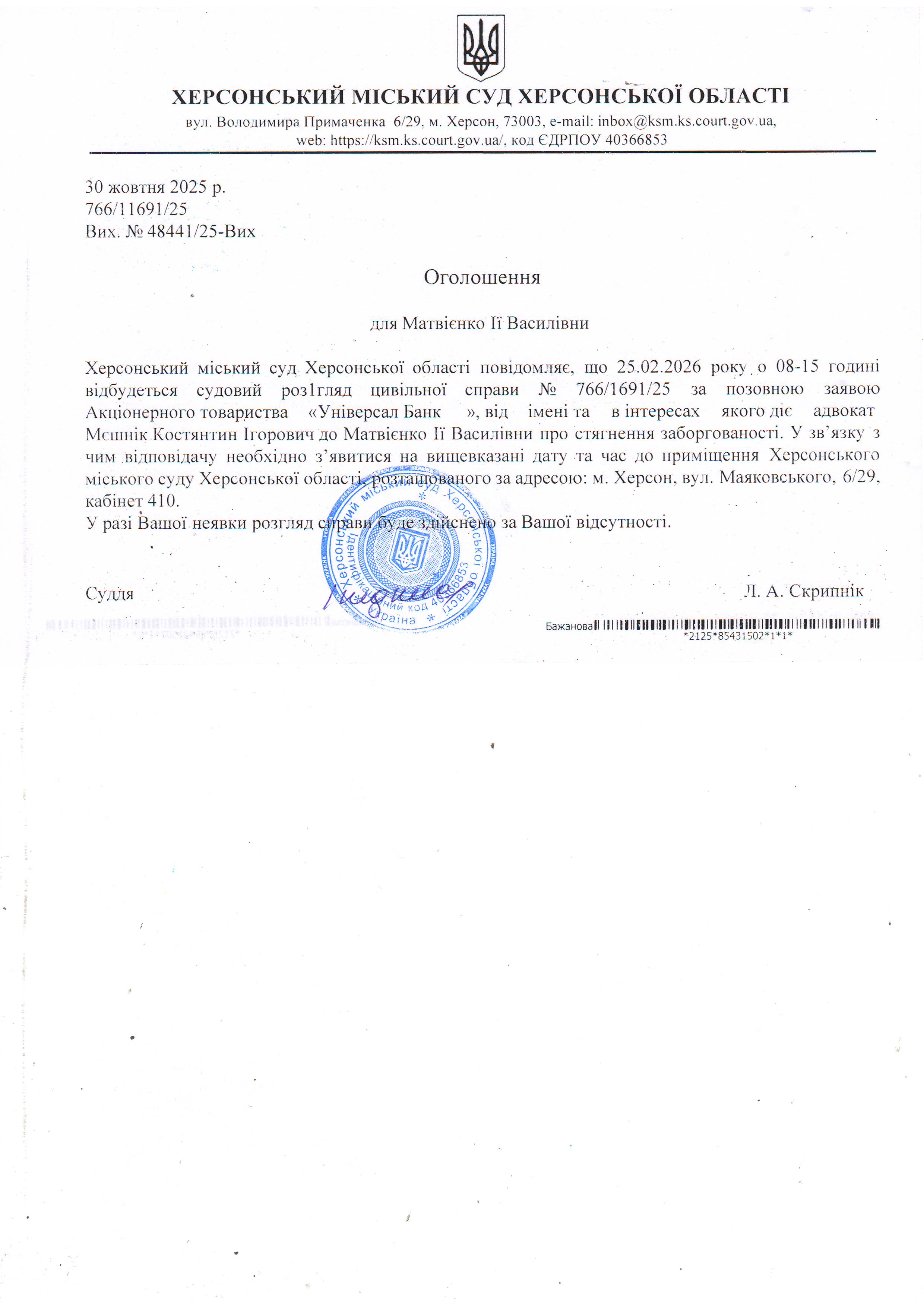 ОГОЛОШЕННЯ ПРО ВИКЛИК ДО СУДУ