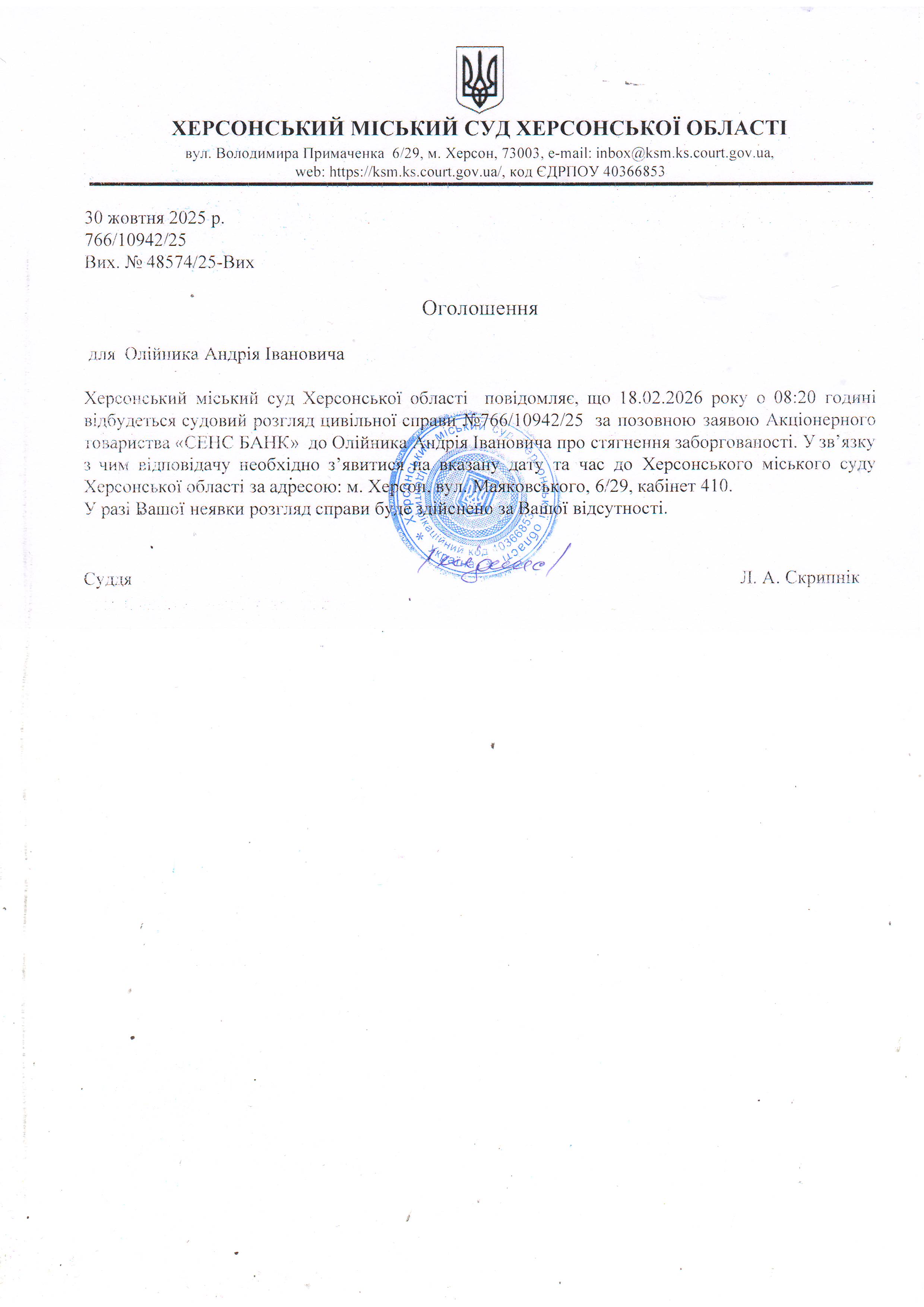 ОГОЛОШЕННЯ ПРО ВИКЛИК ДО СУДУ