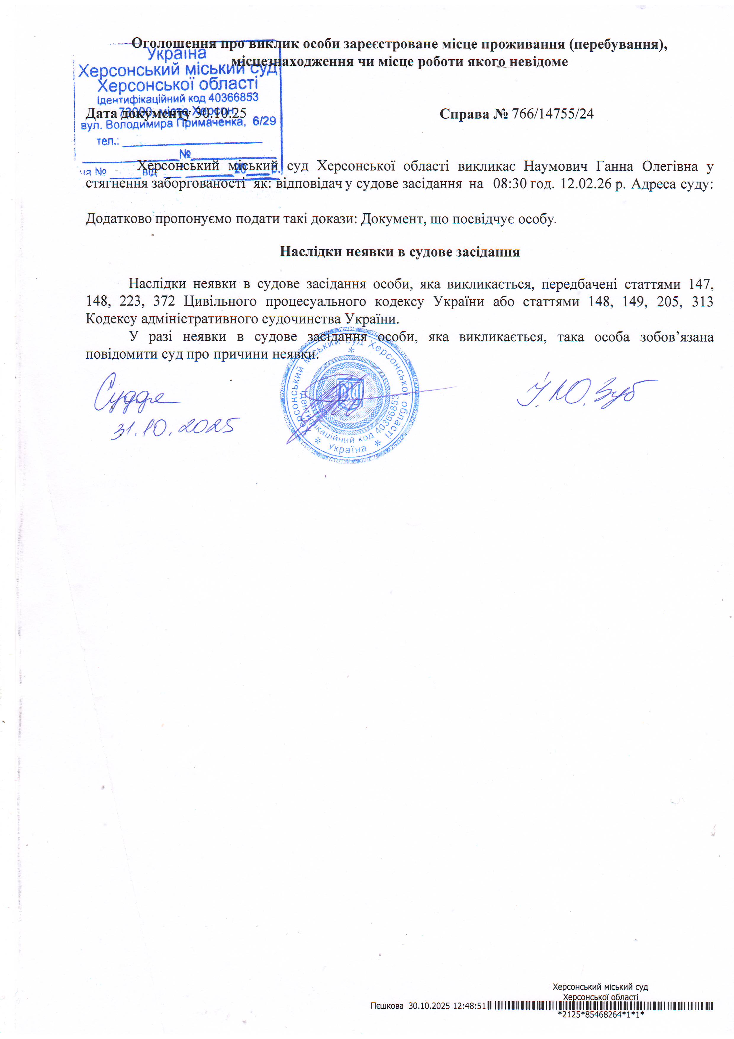ОГОЛОШЕННЯ ПРО ВИКЛИК ДО СУДУ