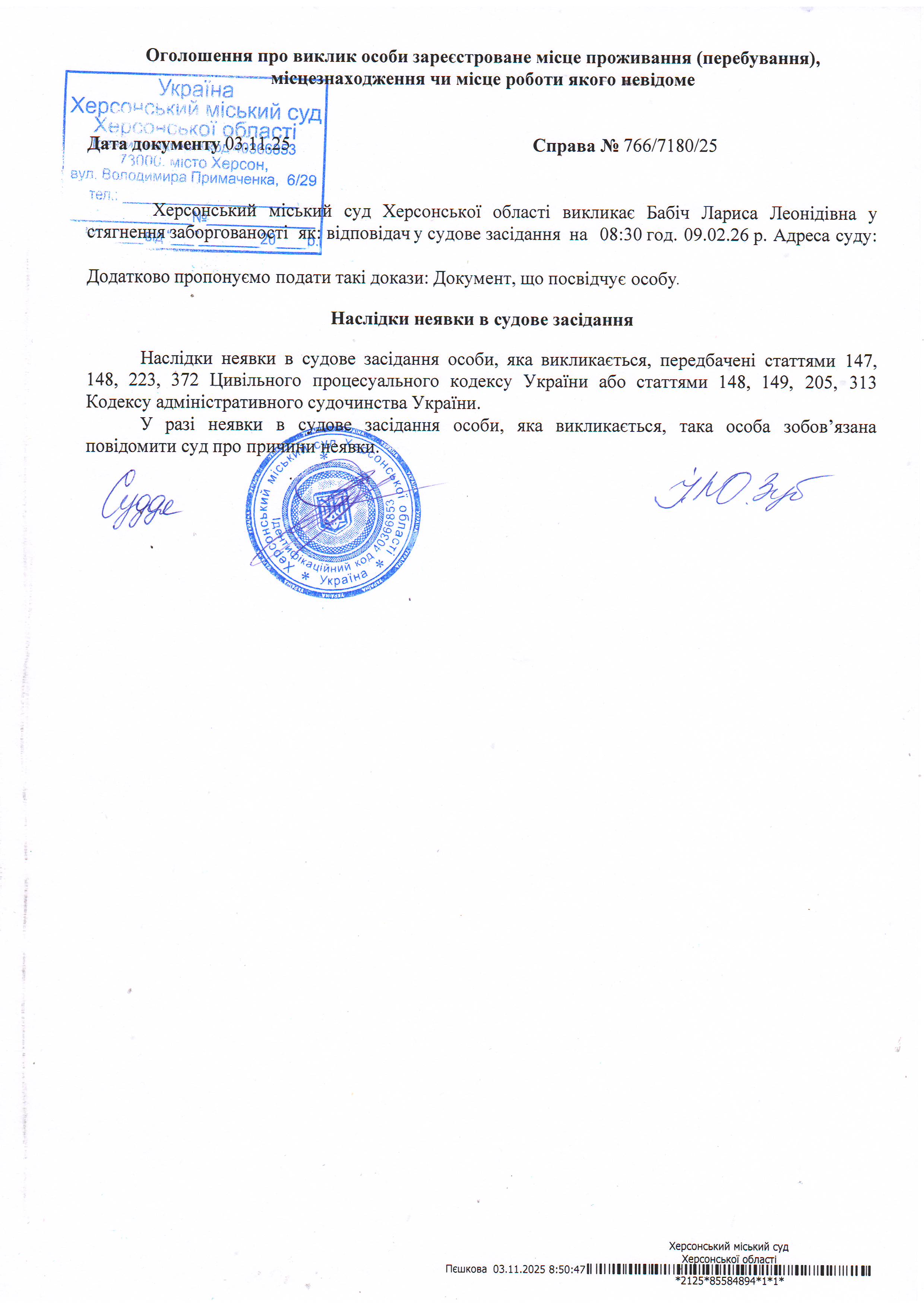 ОГОЛОШЕННЯ ПРО ВИКЛИК ДО СУДУ