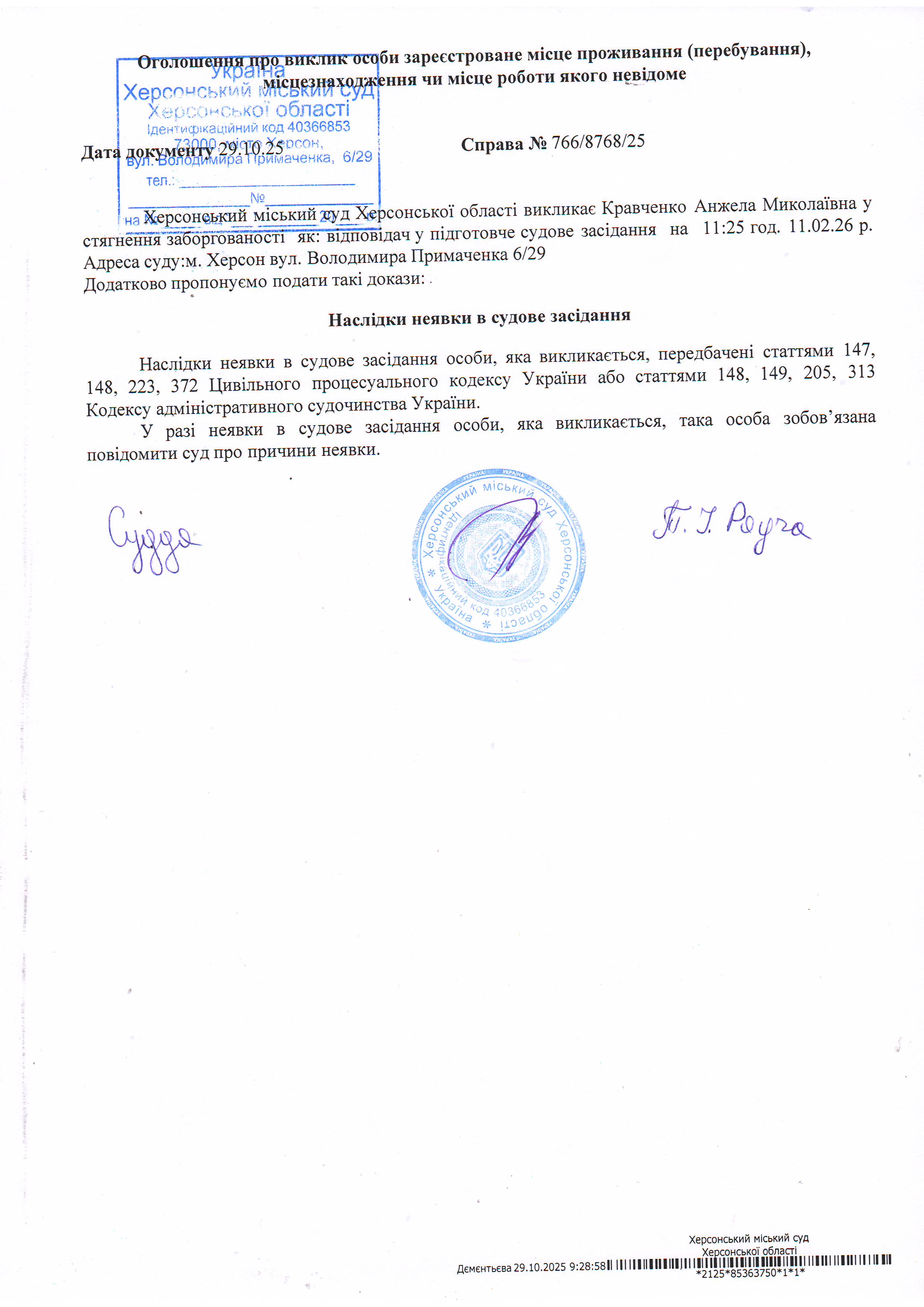 ОГОЛОШЕННЯ ПРО ВИКЛИК ДО СУДУ