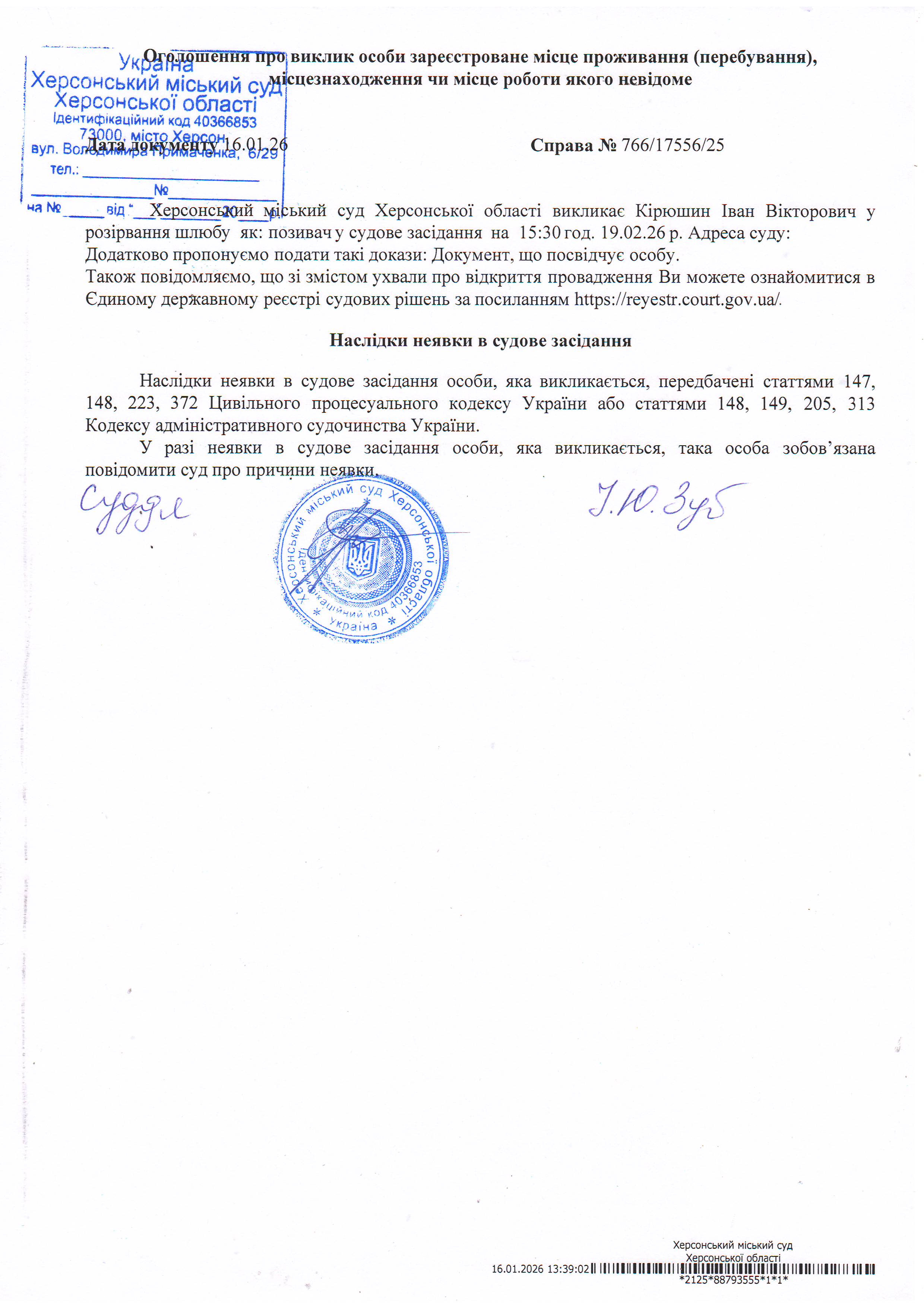 ОГОЛОШЕННЯ ПРО ВИКЛИК ДО СУДУ