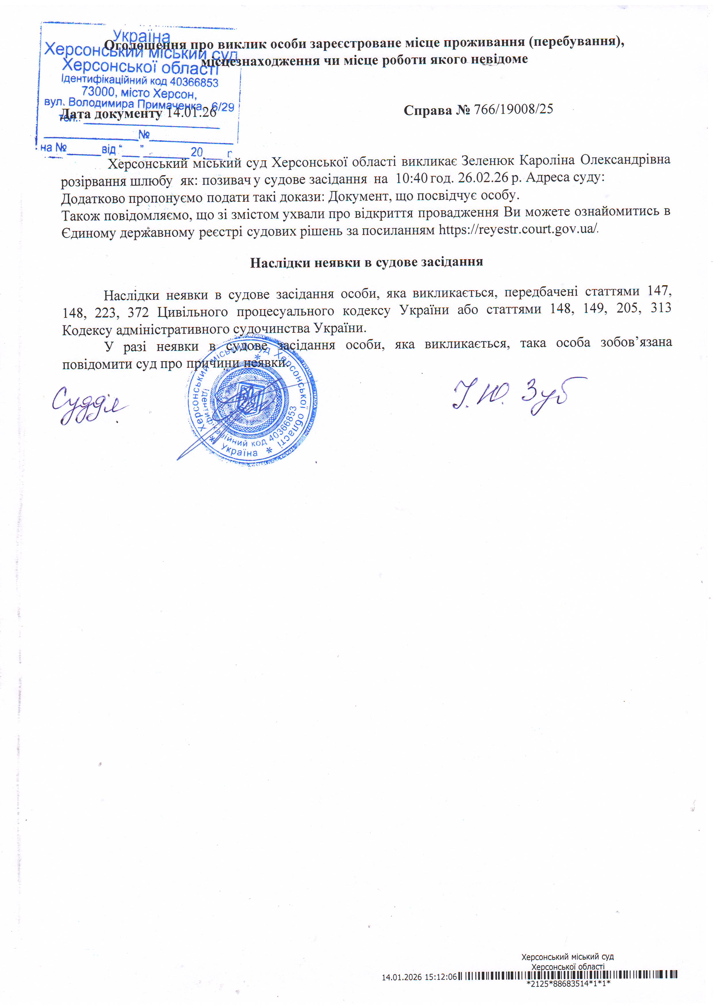 ОГОЛОШЕННЯ ПРО ВИКЛИК ДО СУДУ