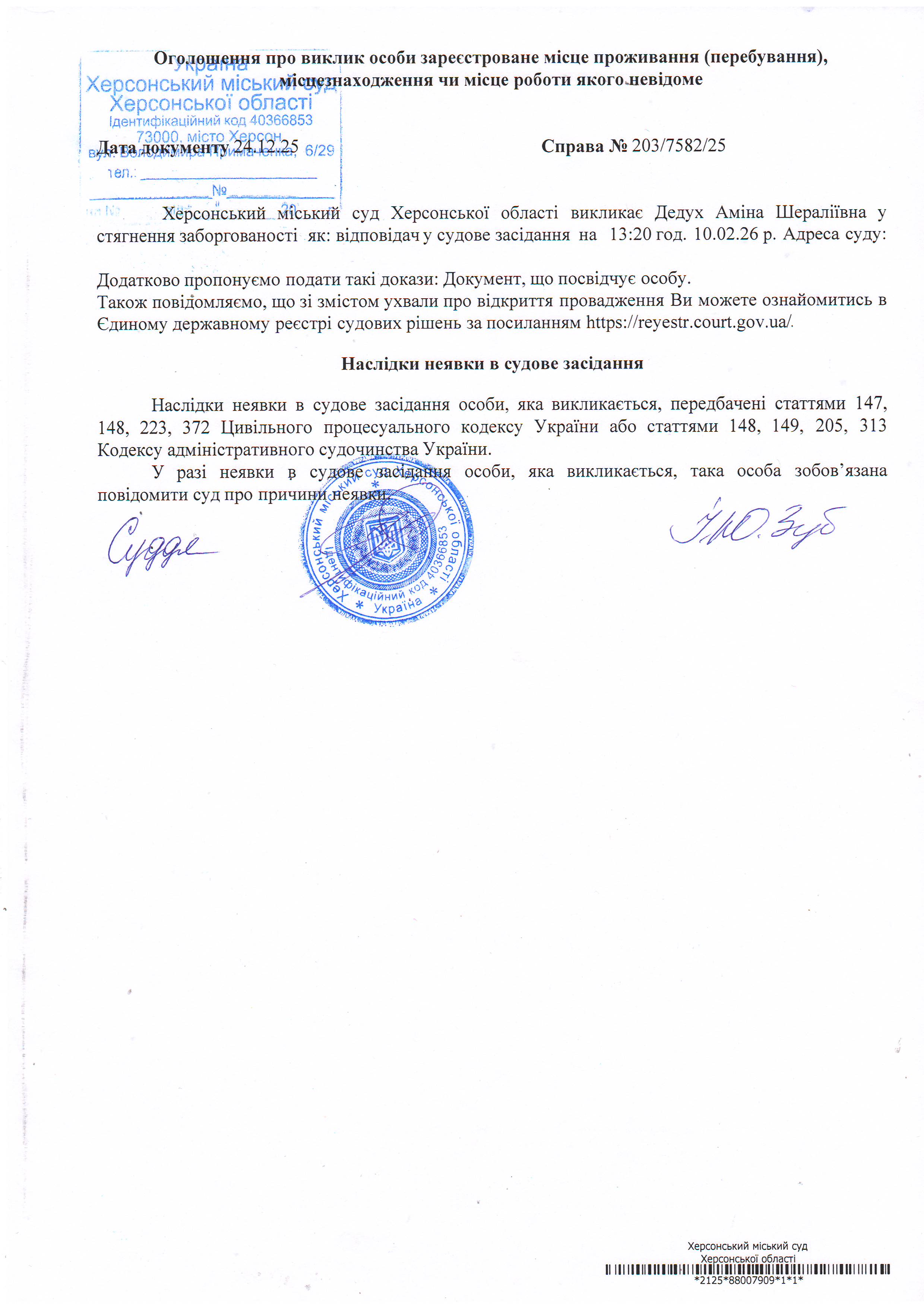 ОГОЛОШЕННЯ ПРО ВИКЛИК ДО СУДУ