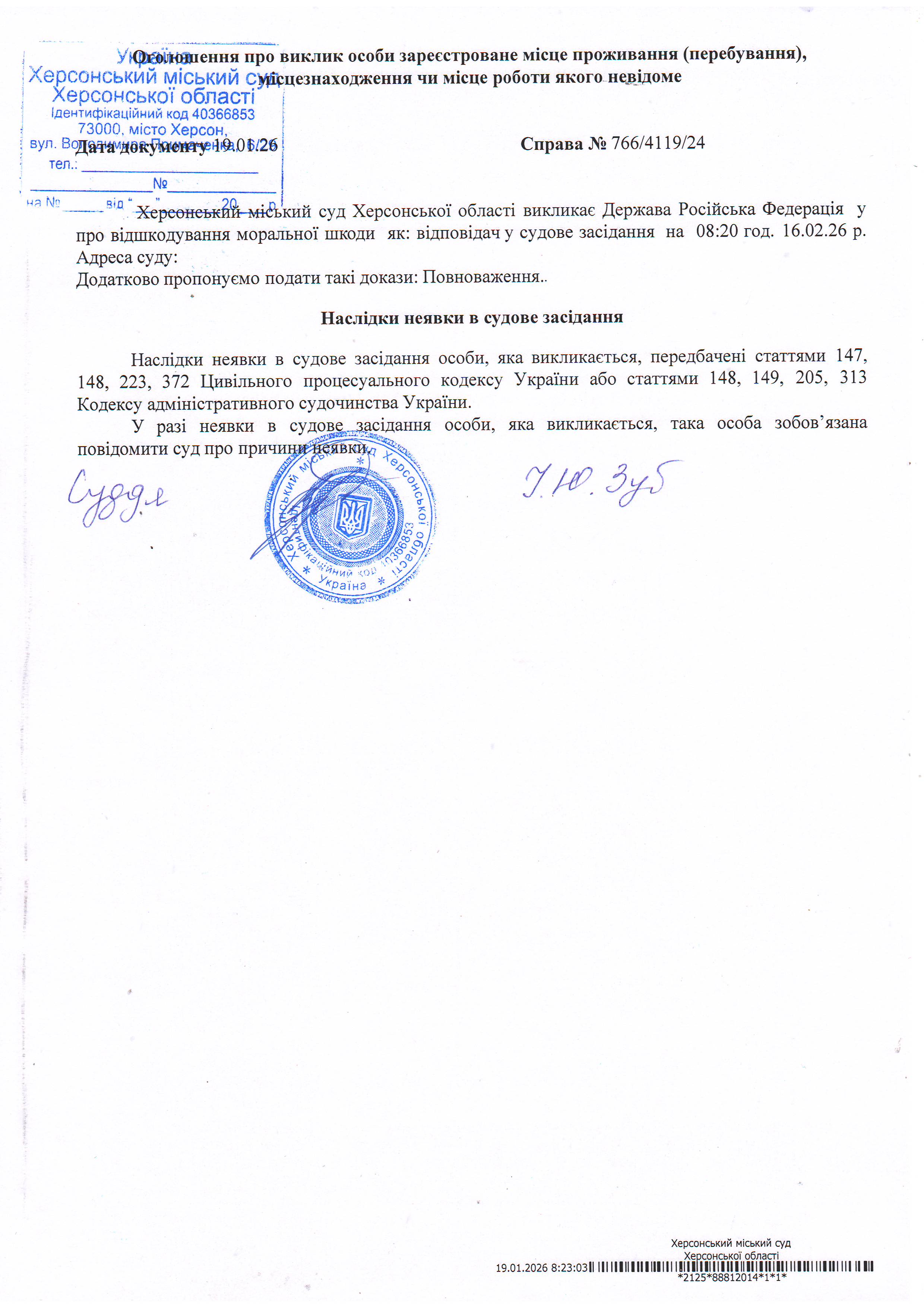 ОГОЛОШЕННЯ ПРО ВИКЛИК ДО СУДУ