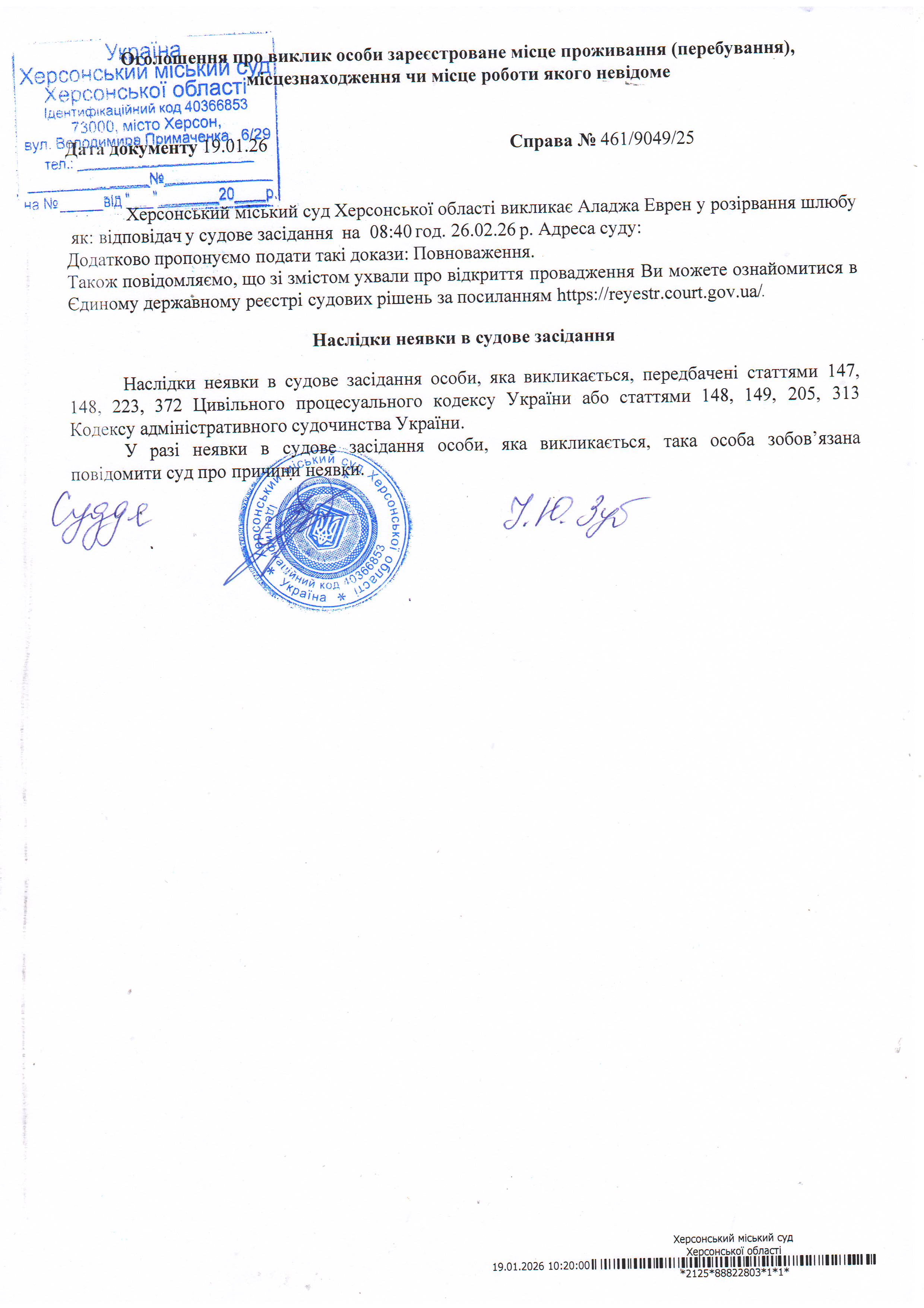 ОГОЛОШЕННЯ ПРО ВИКЛИК ДО СУДУ