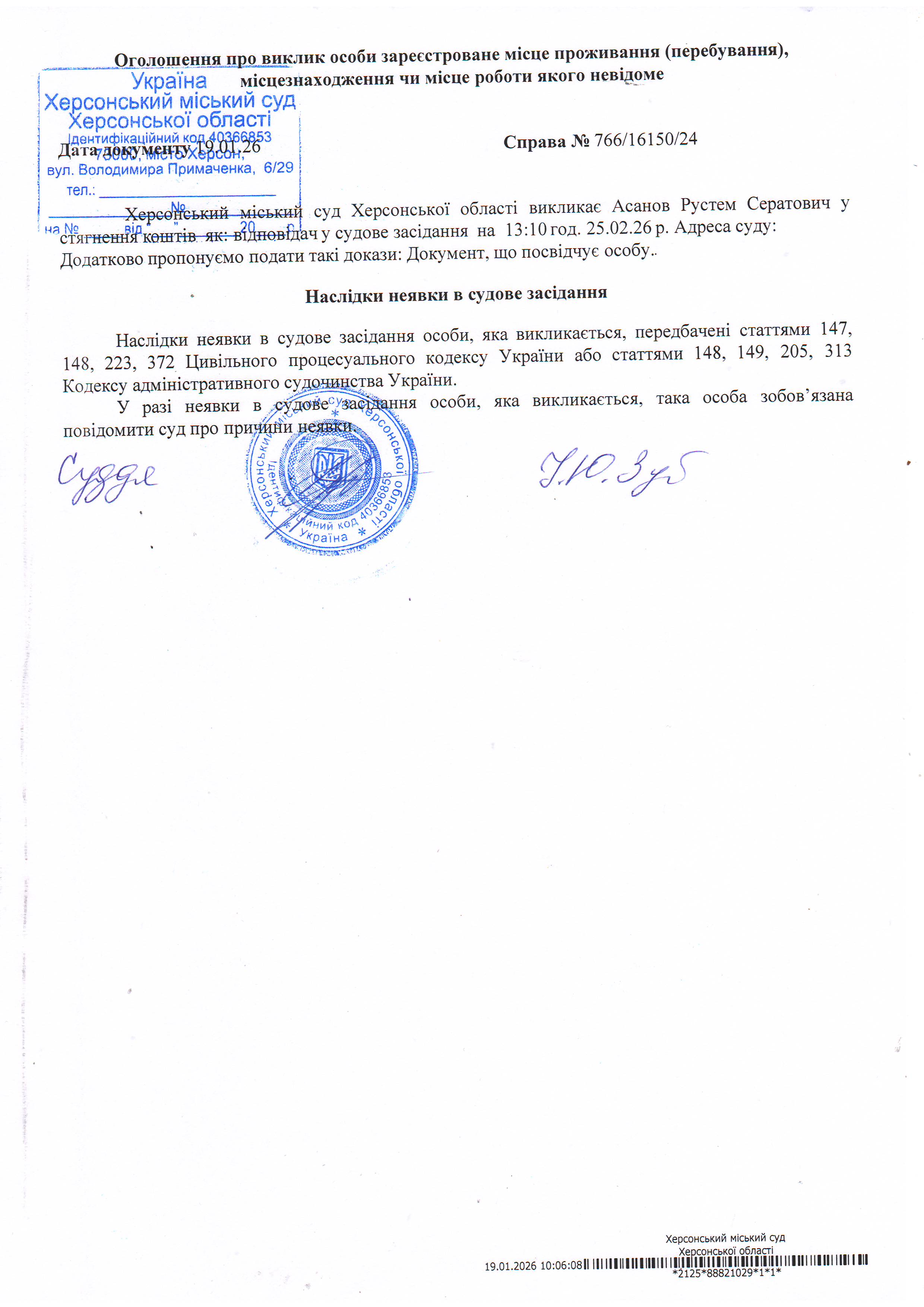 Оголошення про виклик особи в суд та повідомлення про судове рішення