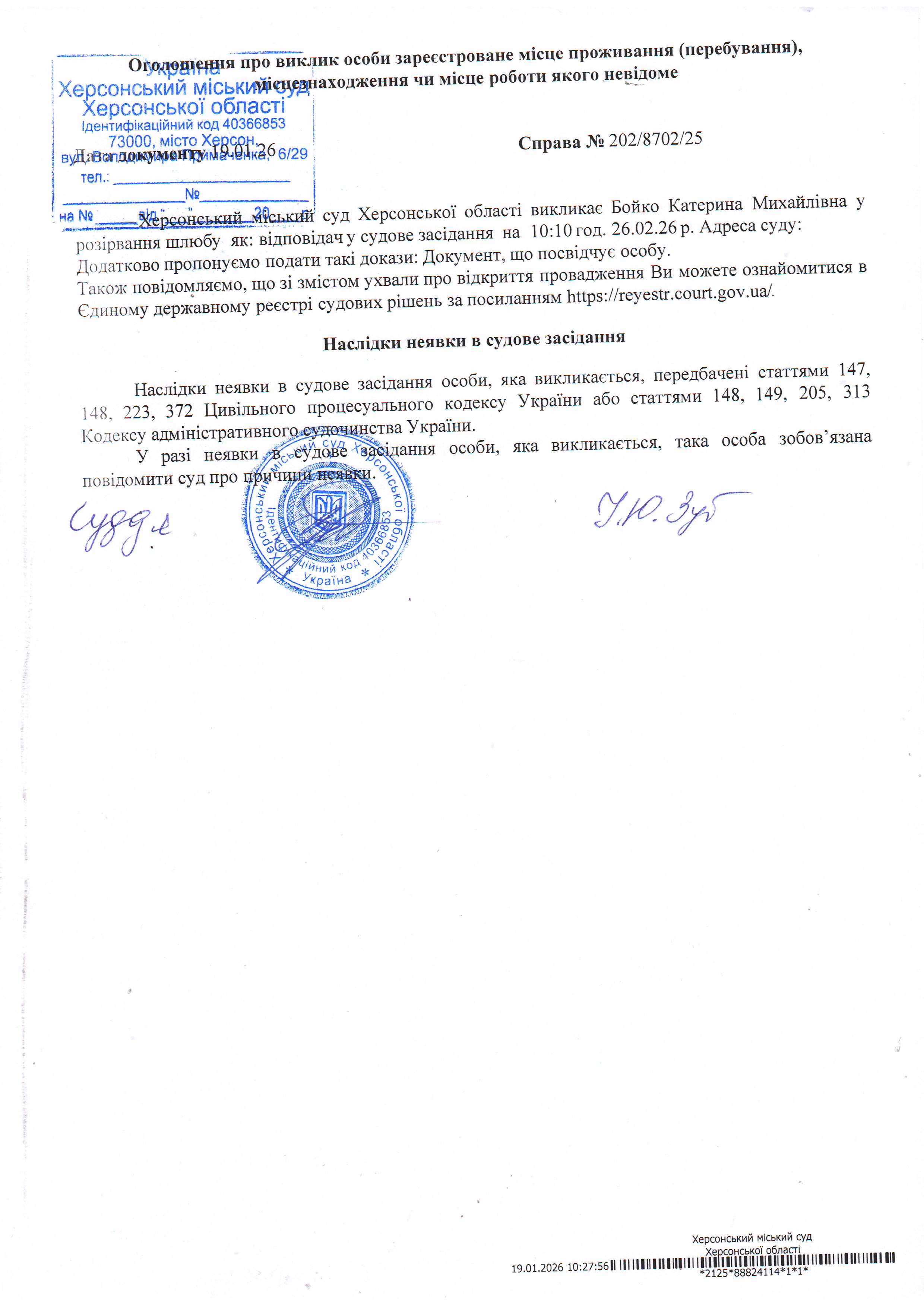 ОГОЛОШЕННЯ ПРО ВИКЛИК ДО СУДУ