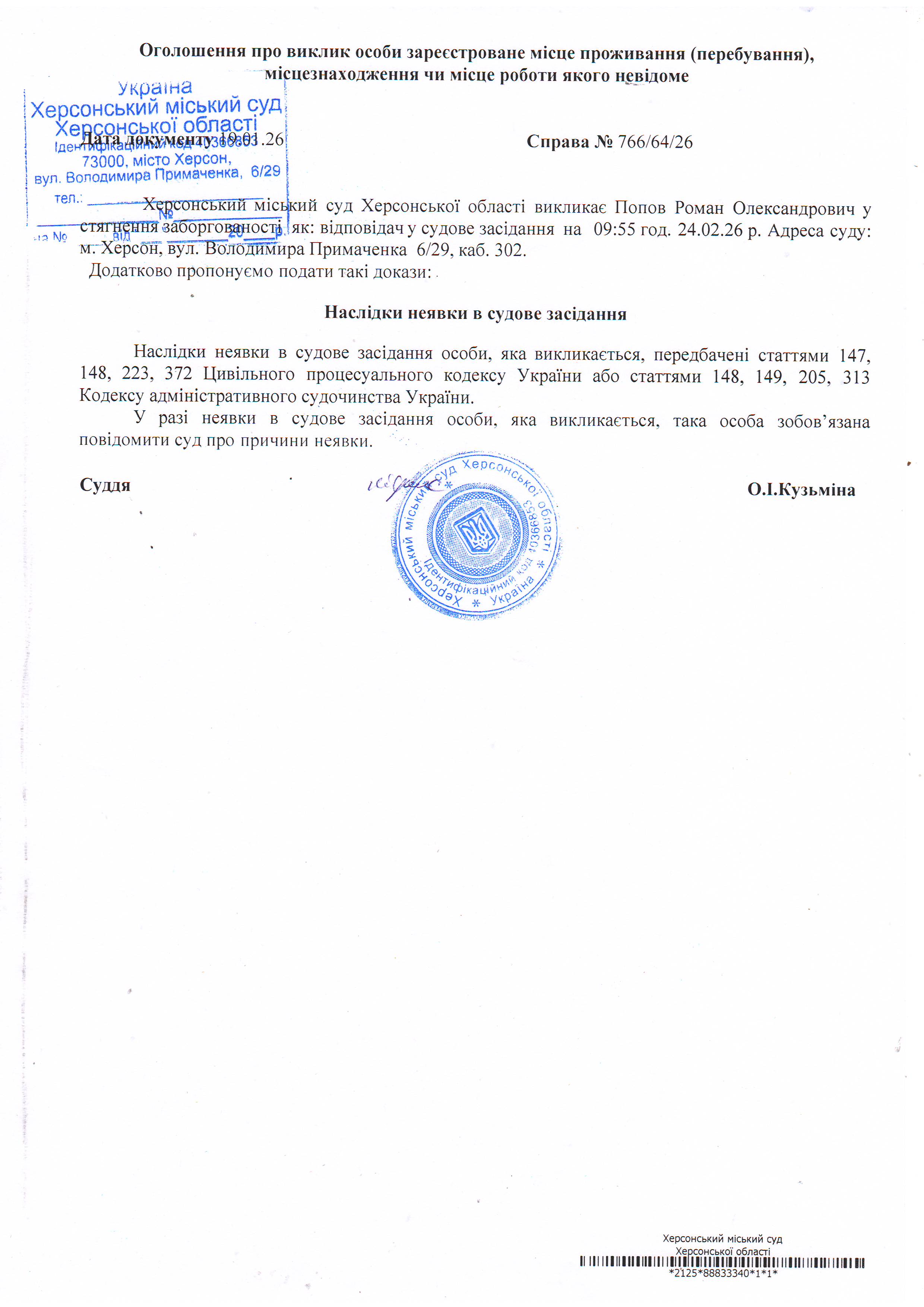 ОГОЛОШЕННЯ ПРО ВИКЛИК ДО СУДУ