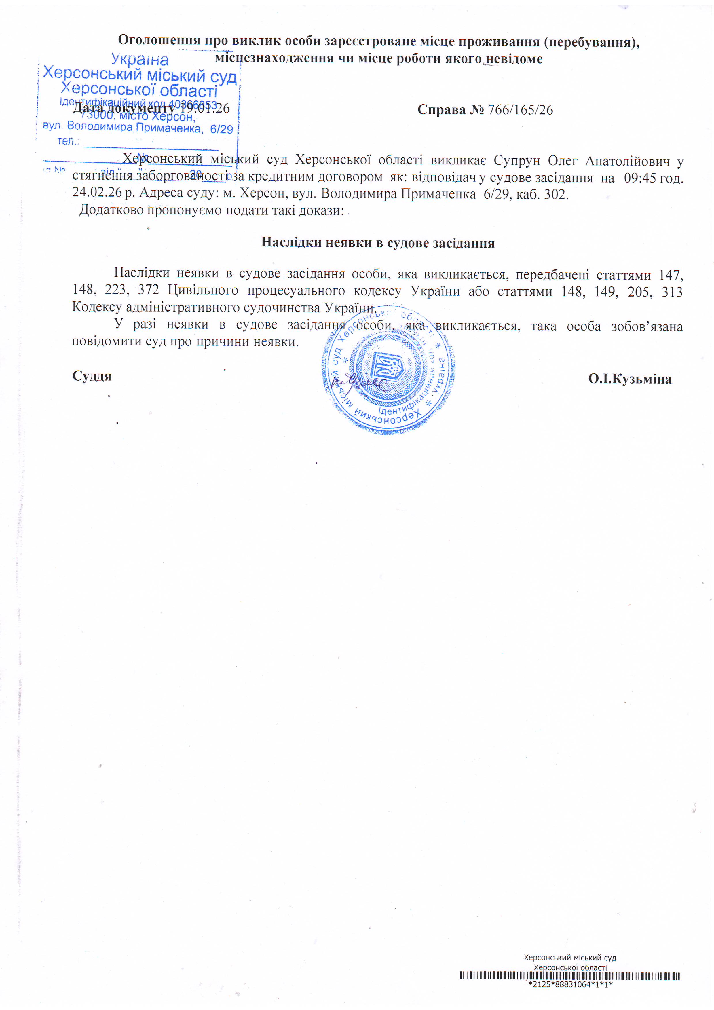 ОГОЛОШЕННЯ ПРО ВИКЛИК ДО СУДУ