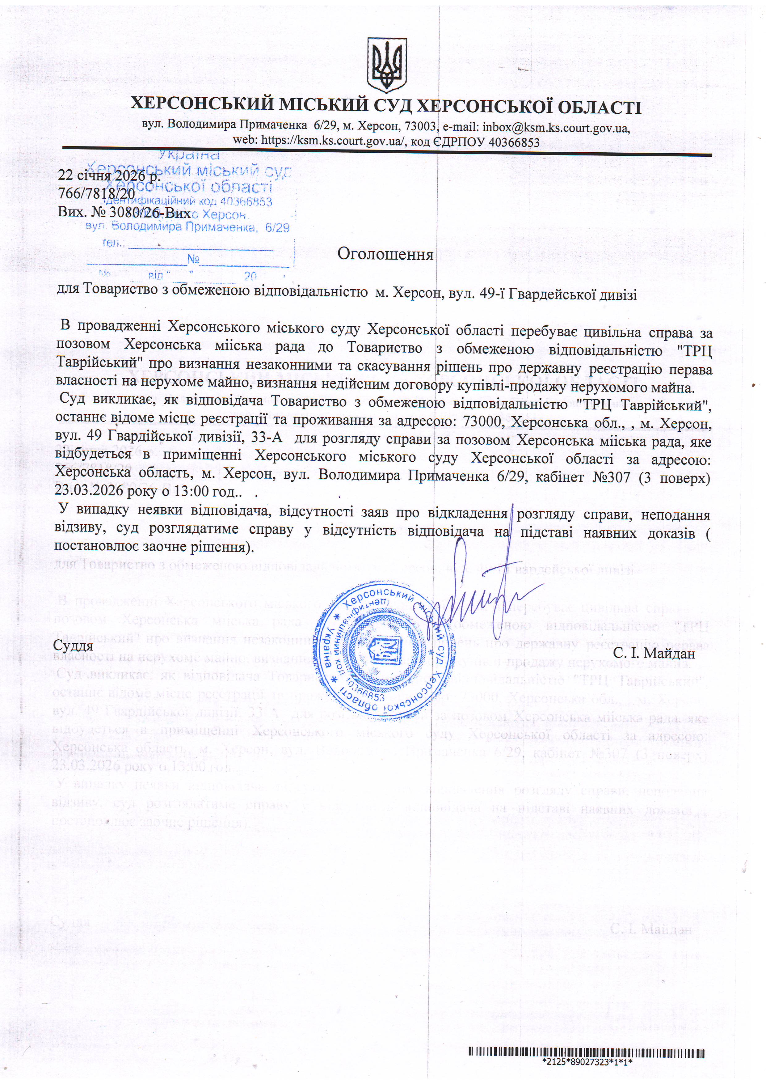 Оголошення для ТОВ "ТРЦ Таврійський"