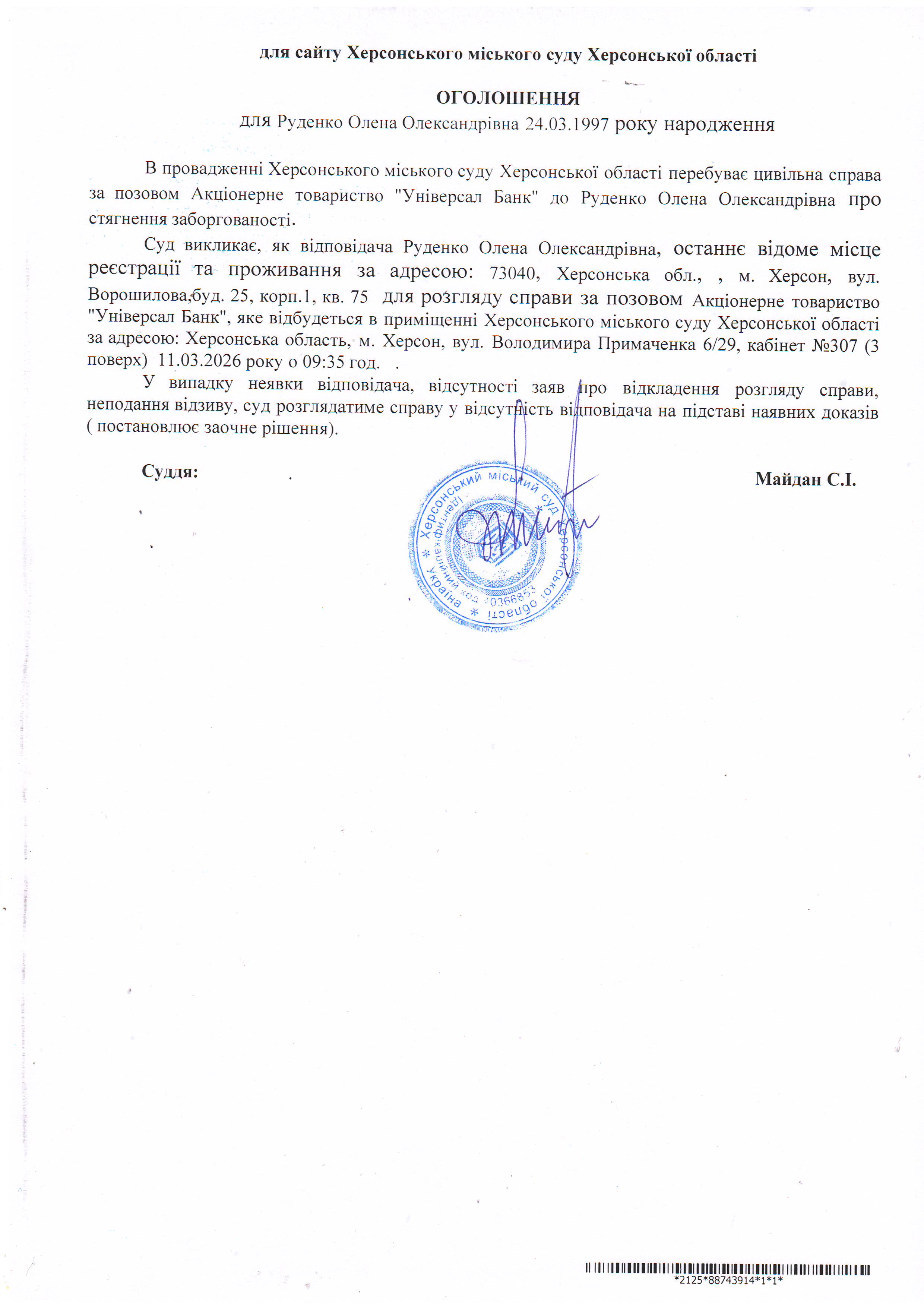 ОГОЛОШЕННЯ ПРО ВИКЛИК ДО СУДУ