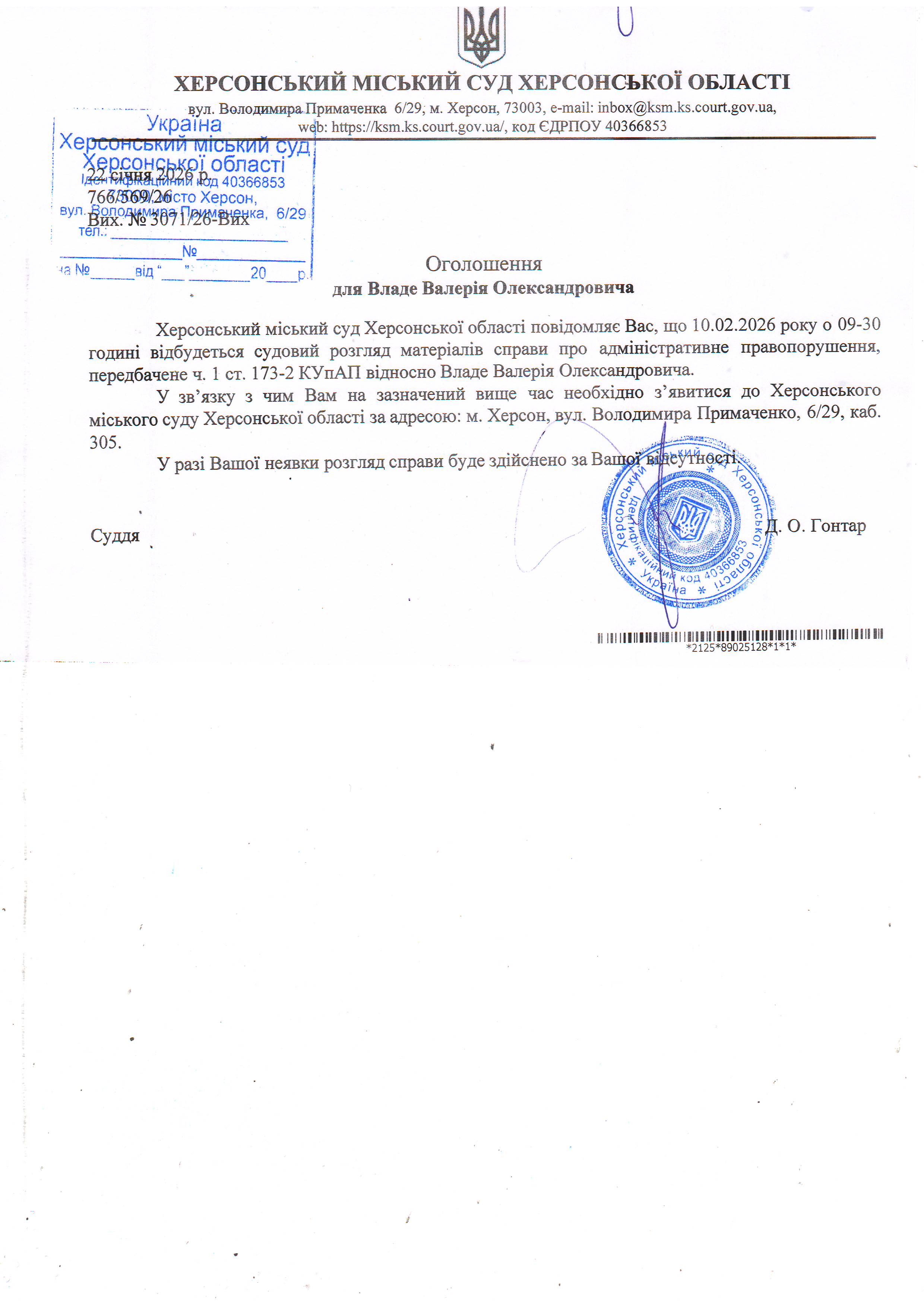 ОГОЛОШЕННЯ ПРО ВИКЛИК ДО СУДУ