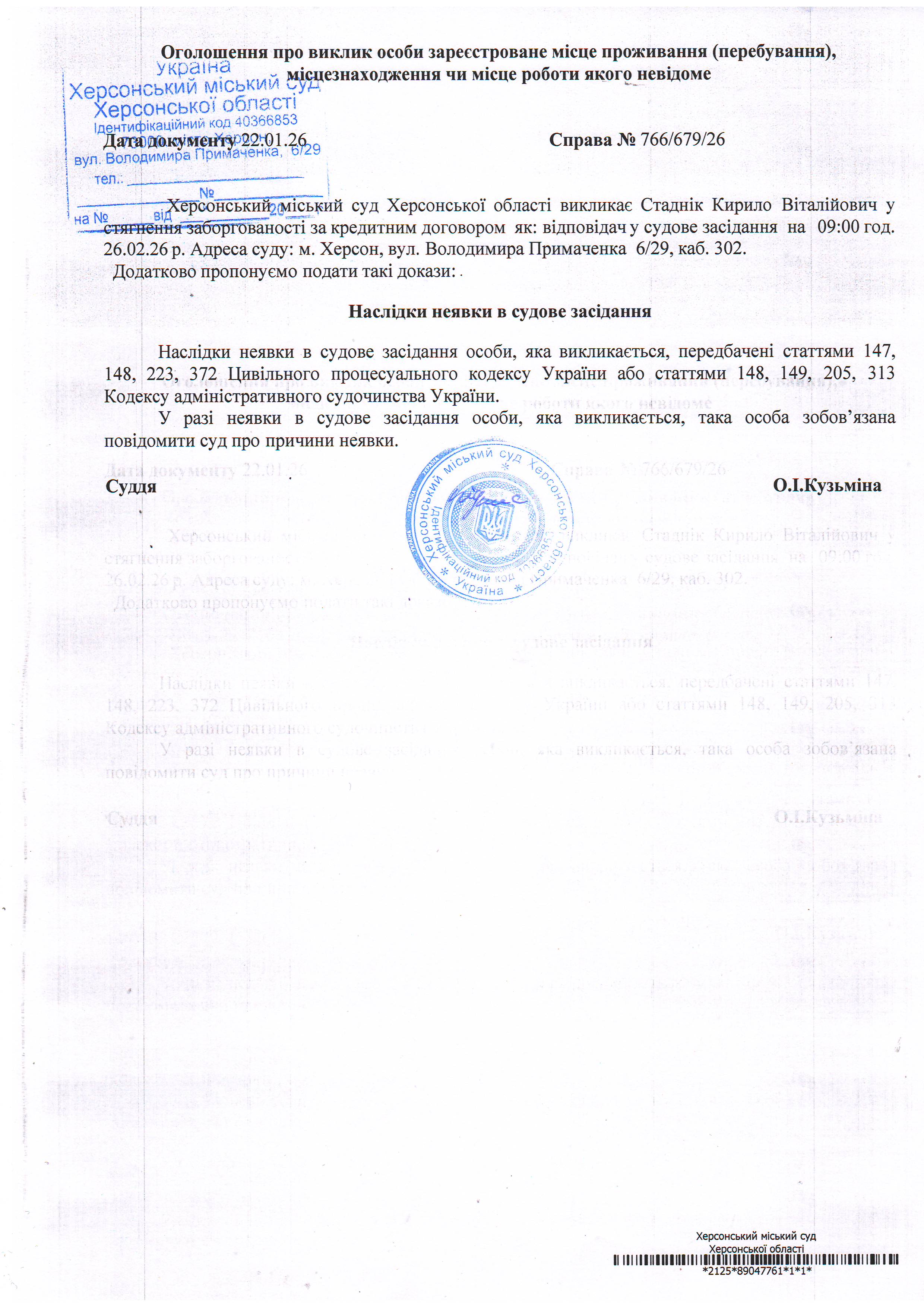 ОГОЛОШЕННЯ ПРО ВИКЛИК ДО СУДУ