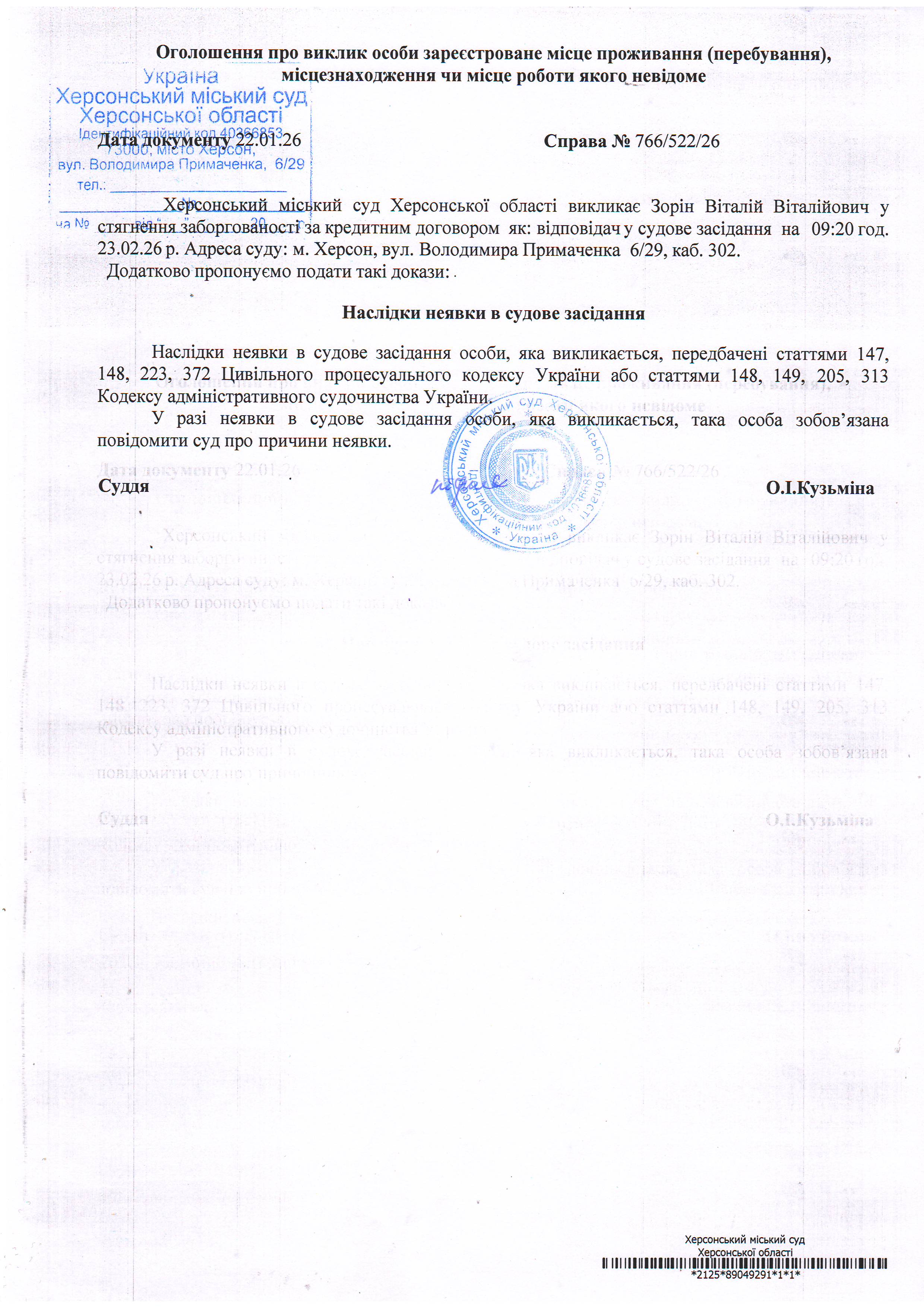ОГОЛОШЕННЯ ПРО ВИКЛИК ДО СУДУ
