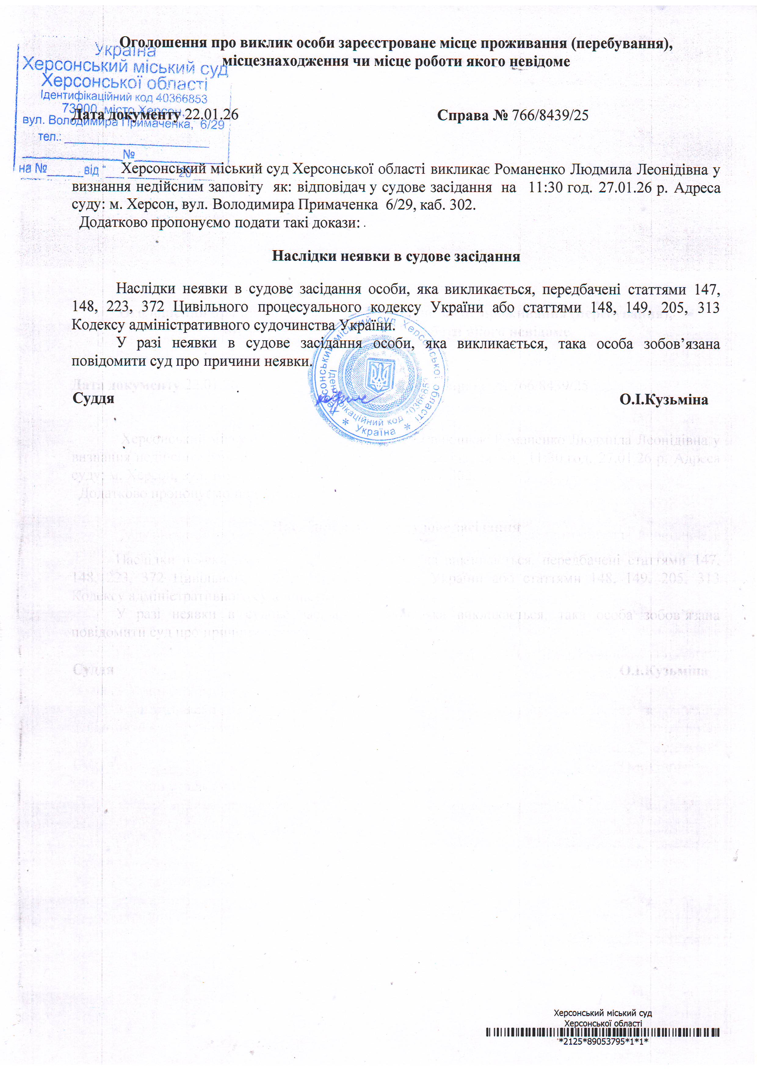 ОГОЛОШЕННЯ ПРО ВИКЛИК ДО СУДУ