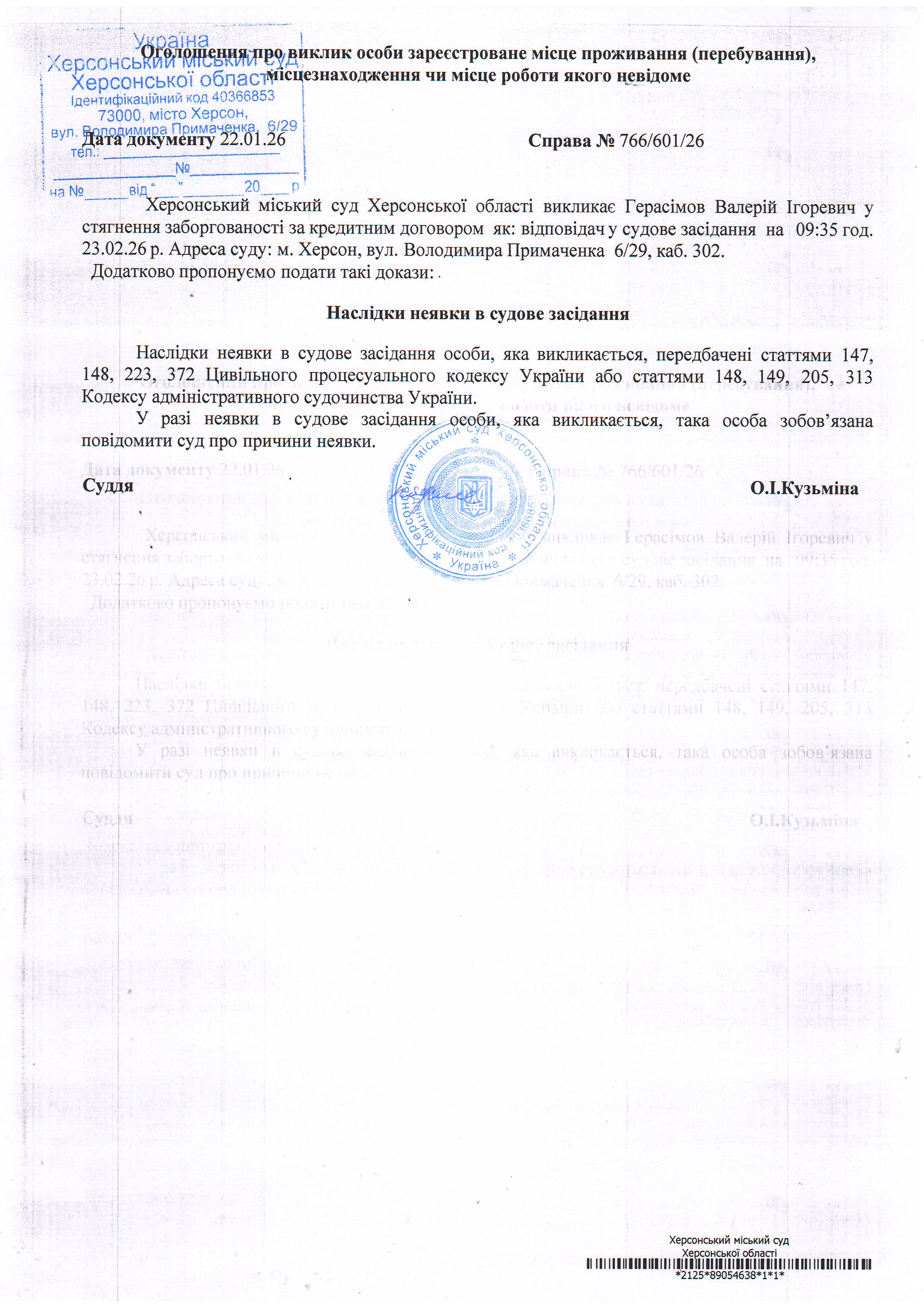 ОГОЛОШЕННЯ ПРО ВИКЛИК ДО СУДУ