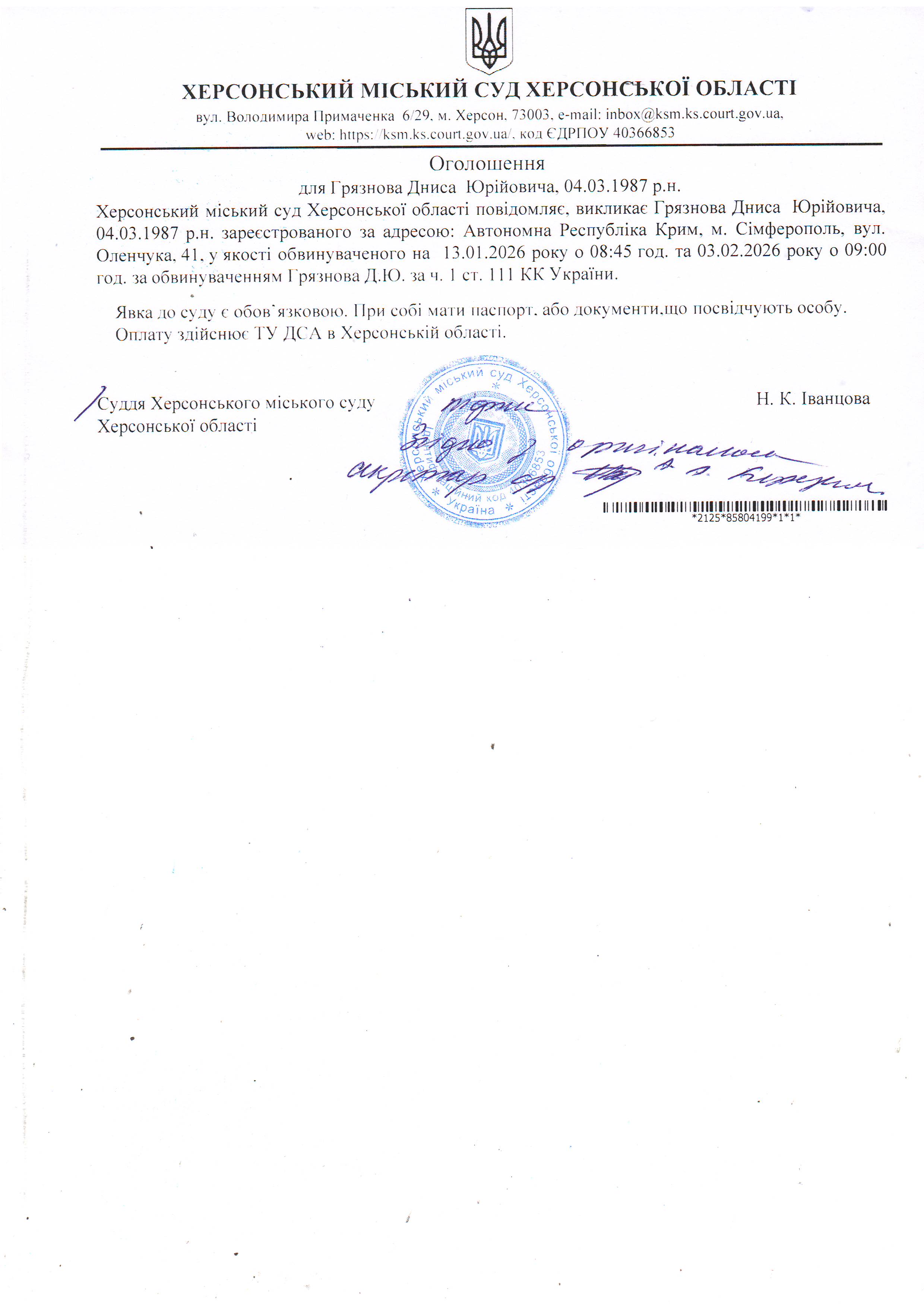Херсонський міський суд Херсонської області