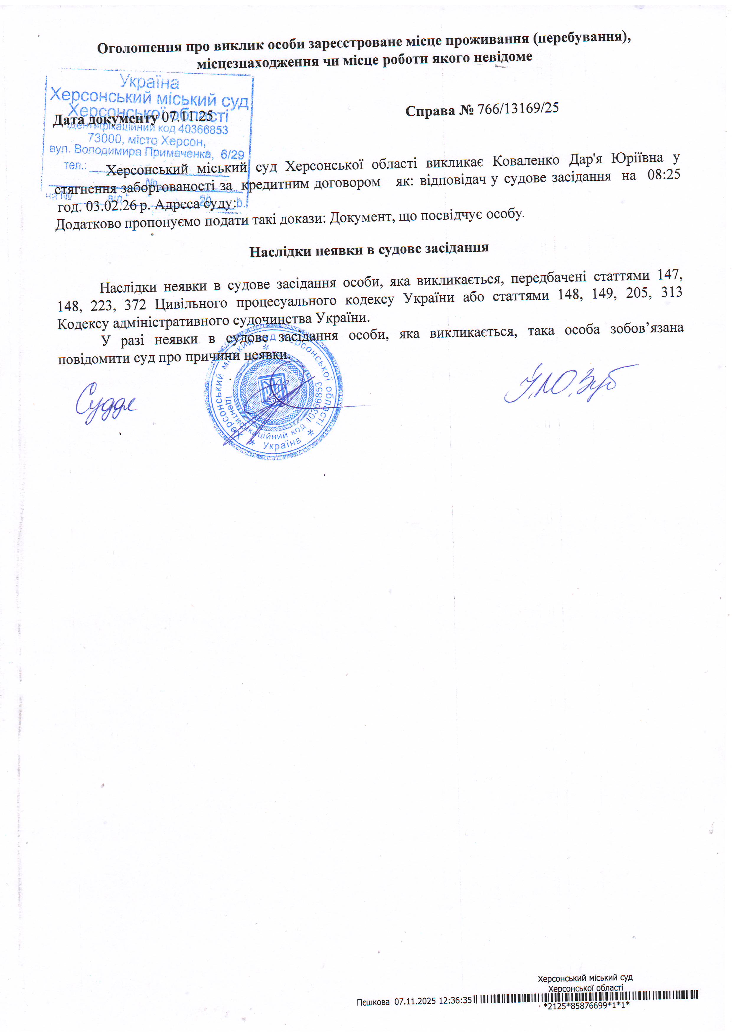 ОГОЛОШЕННЯ ПРО ВИКЛИК ДО СУДУ