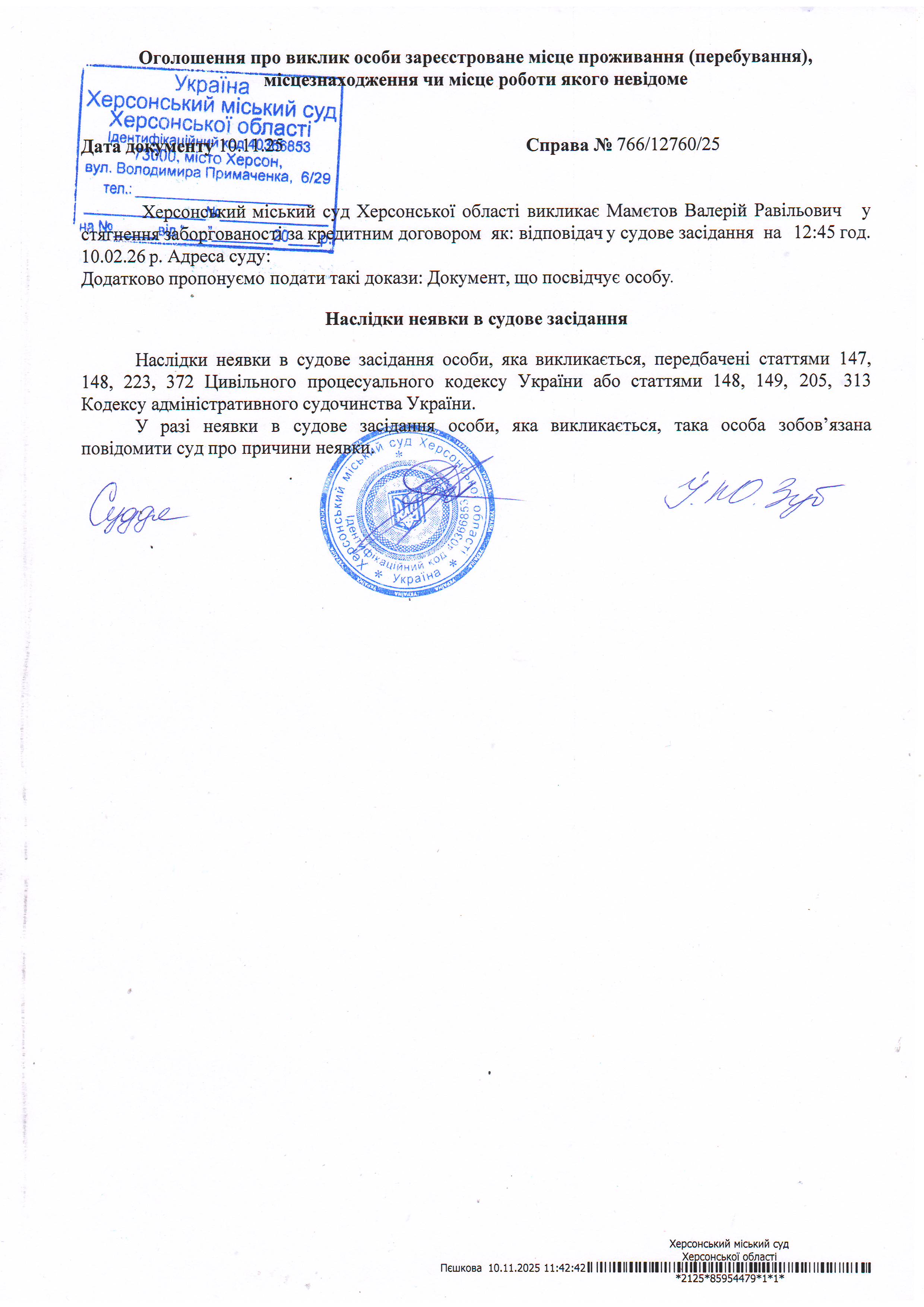 ОГОЛОШЕННЯ ПРО ВИКЛИК ДО СУДУ