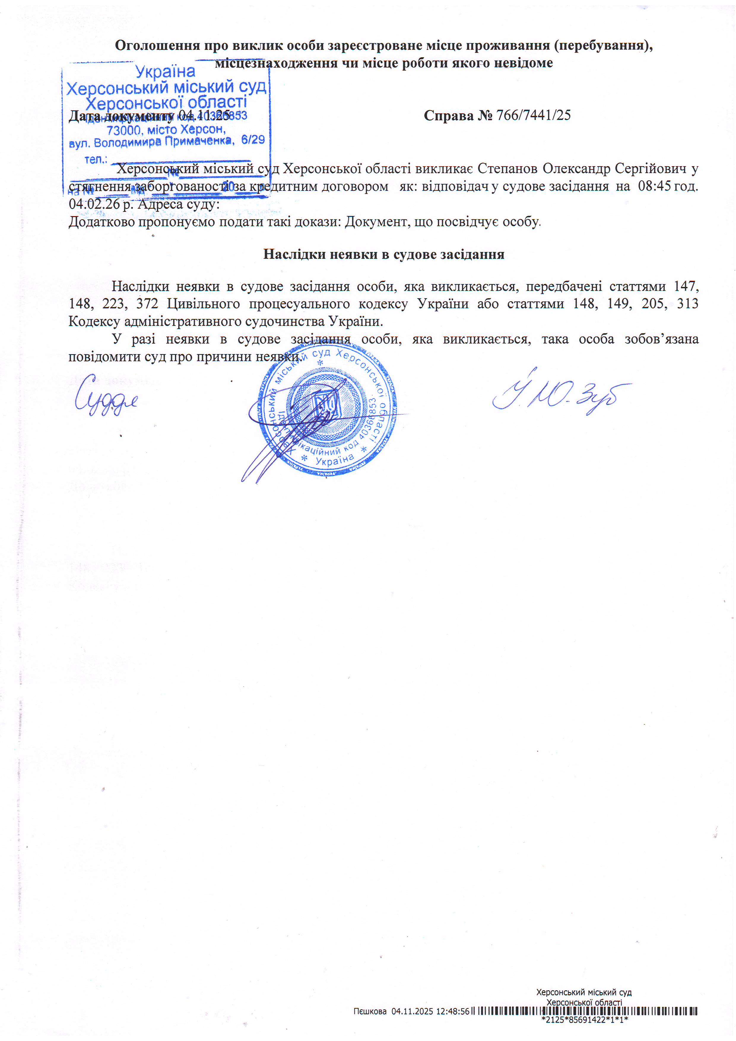ОГОЛОШЕННЯ ПРО ВИКЛИК ДО СУДУ